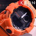 Наручные часы оранжевого оттенка с противоударным корпусомУдаропрочный корпусМеханизм заключён в корпус, выполненный из современных материалов, устойчивых к ударам, механическим повреждениям и падению с высоты: инновационный пластик, карбон, нержавеющая сталь, титан. сделаны из полимерного пластика, который устойчив к повреждениям и падению с высоты. Такой же материал был выбран и для гибкого ремешка, обеспечивающего комфортное ношение. Это первая модель из линейки G-Shock, оснащённая шагомером, теперь вы сможете в любое время следить за своей активностью. Японский кварцевый механизм работает от батарейки, срок её службы - 2 года. Минеральное стекло. Светодиодная подсветкаСветодиодная подсветкаСветодиодная или LED-подсветка обеспечивает появление яркого холодного свечения за счёт LED-элементов - маленьких лампочек. Они потребляют минимальное количество энергии, чаще всего можно встретить 1 светодиод, в нижней части циферблата. циферблата, люминесцентное покрытиеЛюминесцентное покрытиеПозволяет считывать показания времени в темноте. Производители наносят на стрелки, часовые индексы, безель или поверхность циферблата светонакопительный состав, дающий холодное свечение. стрелок. Bluetooth-синхронизацияBluetoothСовременная технология, позволяющая синхронизировать часы с телефоном и переносить данные. Часы с Bluetooth расширяют возможности вашего смартфона и делают его использование ещё более удобным., таймер с автоповтором, секундомер, автоматический календарь, будильник. Водостойкость при давлении 20 бар. Габариты: 54,1 x 48,6 x 15,5 мм.