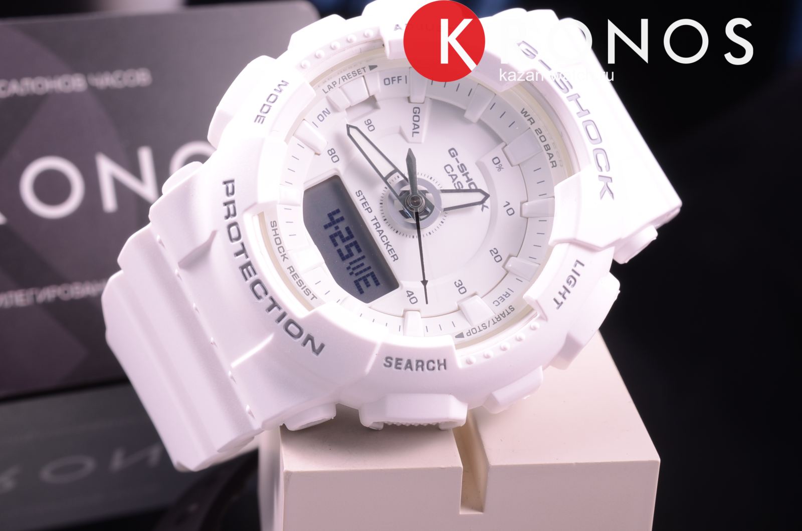 Стильная и привлекательная модель наручных часов Casio G-SHOCK GMA-S130-7A с кварцевым механизмом, характеризуется внешней привлекательностью и оригинальным дизайнерским решением. Корпус и ремешок изготовлен из полимерного пластика, что обеспечивает высокую степень защиты механизма. Подсветка светодиодом позволяет считывать данные с аналого-цифрового дисплея независимо от интенсивности внешнего освещения. Так же в это модели присутствует шагомер возможность отслеживать информацию о пройденных расстояниях, допускаются различные диапазоны настроек. Так же в модели часов GMA-S130-7A предусмотрено наличие будильника, секундомера, таймера и второго часового пояса. Выбор формата отображения времени: 12-ти и 24-х часовой, точность хода предполагает погрешность не более 15 секунд в месяц. Элемент питания CR2016 прослужит не менее 2 лет. Размер корпуса часов 49,45,9х15,5 мм, вес 52 грамма, водонепроницаемость WR200.