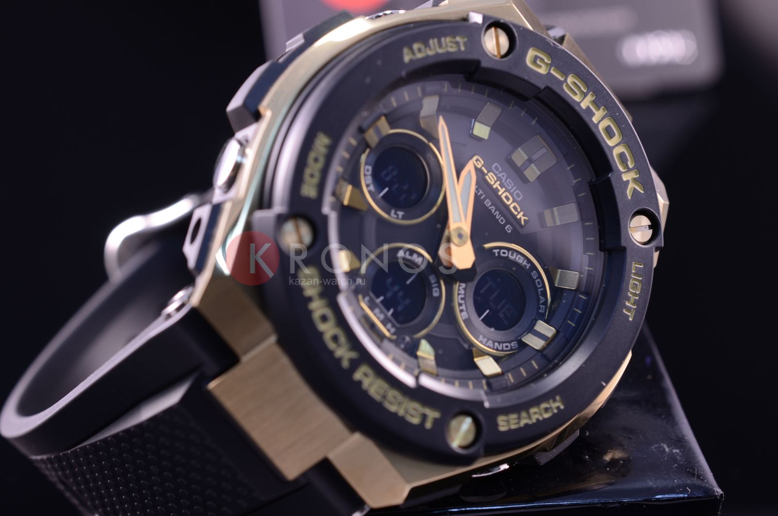Аксессуар линейки G-Steel отлично смотрится на широком мужском запястье, массивный тёмный циферблат с крупными золотистыми деталями станет превосходным дополнением для повседневного образа. Это часы на солнечной батарее с технологией , включённая функция сохранения энергии увеличивает время работы аккумулятора без подзарядки до 18 месяцев. Ударопрочный корпусУдаропрочный корпусМеханизм заключён в корпус, выполненный из современных материалов, устойчивых к ударам, механическим повреждениям и падению с высоты: инновационный пластик, карбон, нержавеющая сталь, титан. отличается необычной двухслойной конструкцией, амортизационная полимерная прокладка располагается между пластами из нержавеющей стали 316L. Это обеспечивает появление максимальной устойчивости к ударам и повреждениям. Светодиодная подсветкаСветодиодная подсветкаСветодиодная или LED-подсветка обеспечивает появление яркого холодного свечения за счёт LED-элементов - маленьких лампочек. Они потребляют минимальное количество энергии, чаще всего можно встретить 1 светодиод, в нижней части циферблата. циферблата, стрелки с люминесцентным покрытиемЛюминесцентное покрытиеПозволяет считывать показания времени в темноте. Производители наносят на стрелки, часовые индексы, безель или поверхность циферблата светонакопительный состав, дающий холодное свечение.. Прочный каучуковый ремешок. Минеральное стекло. Водостойкость 20 бар. Частичный цветной IP-финишIP-покрытиеМетод ионного напыления. Демонстрирует повышенную устойчивость к истиранию, окислению и химическим веществам. Под воздействием высокого давления и температуры около 1500°C молекулы металла надёжно соединяются с частицами корпуса часов. корпуса. Функции: автоматический календарь, будильник, хронографХронографФункция позволяет измерять отрезки времени с особой точностью: часы, минуты, секунды. Верным признаком хронографа является наличие на циферблате 3 дополнительных окошек-счётчиков., секундомер, мировое времяМировое время Полезное часовое усложнение, отображающее время в основных городах и известных областях по всему миру, оно связано с часовыми поясами, удобно для путешественников и бизнесменов. , таймер обратного отсчёта, UTCUTCВсемирное кординационное время, не имеющее привязки к географическому положению Гринвича, основывается на атомном отсчёте времени. Регулировка времени осуществляется более точно, чем устаревшее GMT.