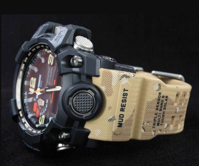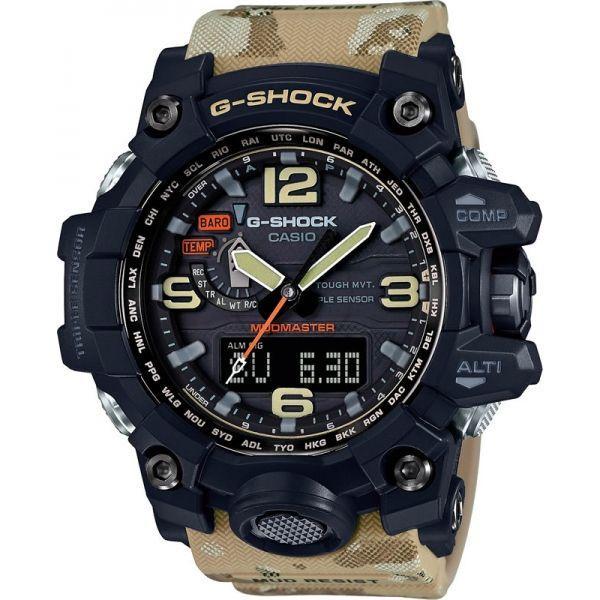 Ударопрочные мужские часы из коллекции Master of G выполнены в стиле миллитари. Исполнение премиум-класса, грязеустойчивые, с водонепроницаемостью в 20 атмосфер. Кварцевые часы с аналоговым и цифровым способами отображения времени, и с корпусом, выполненым из пластика и высокопрочной стали. Синий циферблат защищает надежное сапфировое стекло. Браслет темно-зеленого из прочного пластика. Вес часов 119 грамм. Часы Casio GWG-1000-1A9 оснащены множеством дополнительных функций: компас, термометр, таймер обратного отсчета, барометр, высотомер, секундомер, индикатор запаса хода, подсветкой стрелок и дисплея. Заряжаются часы от солнечной батареи, в режиме сохранения энергии сохраняют работоспособность без подзарядки в течении 25 месяцев.