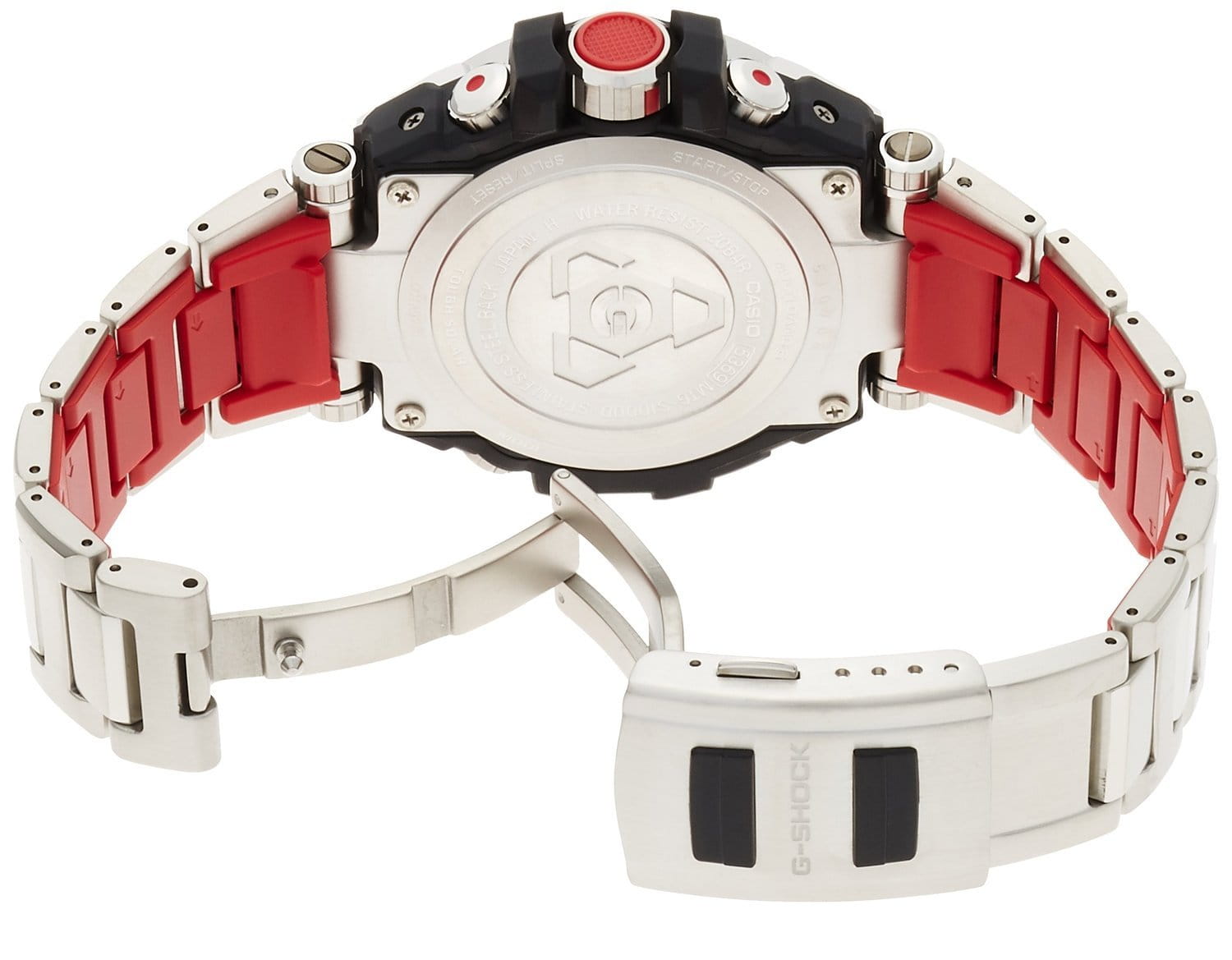 Современные мужские японские наручные часы. Премиум коллекция G-shock MT-G. Корпус и браслет выполнены из высокопрочной стали с аникоррозийными свойствами с пластиковыми вставками. Черный фон циферблата разбавлен объемными светлыми 3D индексами и красными элементами дизайна. Сапфировое стекло с антибликовым покрытием, устойчивое к появлению царапин. Часы снабжены множеством дополнительных функций - секундомер, полностью автоматическая подсветка с автоматической регулируемой автоматизацией. Ежечасный сигнал, повтор сигнала будильника, второй часовой пояс. Водонепроницаемость часов до 200 метров (возможны занятия дайвингом). Ударопрочные и магнитоустойчивые, источник энергии солнечная батарея.