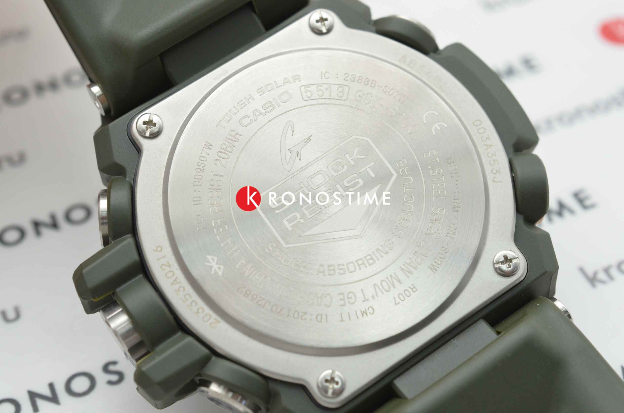 Наручные часы выпущены в брутальном, слегка агрессивном дизайне. Они оформлены в чёрном цвете, ярким элементом стал оранжевый счётчик на метке 9 часов, имитирующий турбину двигателя самолёта. Окошко предназначено для контроля уровня заряда батарейки, чем больше цвета видно, тем выше необходимость поставить часы на подзарядку. Модель серии G-Steel оснащена японским кварцевым механизмом, получаемым энергию для работы от источников света. Так реализуется технология . Аксессуар наделён противоударным корпусомУдаропрочный корпусМеханизм заключён в корпус, выполненный из современных материалов, устойчивых к ударам, механическим повреждениям и падению с высоты: инновационный пластик, карбон, нержавеющая сталь, титан. из полимера и стали 316L, что позволяет усилить конструкцию. На стрелки нанесено люминесцентное покрытиеЛюминесцентное покрытиеПозволяет считывать показания времени в темноте. Производители наносят на стрелки, часовые индексы, безель или поверхность циферблата светонакопительный состав, дающий холодное свечение., аналоговый циферблат подсвечивается светодиодомСветодиодная подсветкаСветодиодная или LED-подсветка обеспечивает появление яркого холодного свечения за счёт LED-элементов - маленьких лампочек. Они потребляют минимальное количество энергии, чаще всего можно встретить 1 светодиод, в нижней части циферблата.. Синхронизация со смартфоном BluetoothBluetoothСовременная технология, позволяющая синхронизировать часы с телефоном и переносить данные. Часы с Bluetooth расширяют возможности вашего смартфона и делают его использование ещё более удобным. позволяет устанавливать точное время, настраивать параметры будильника, мирового времениМировое время Полезное часовое усложнение, отображающее время в основных городах и известных областях по всему миру, оно связано с часовыми поясами, удобно для путешественников и бизнесменов. . Функции: ежедневный будильник, секундомер, хронографХронографФункция позволяет измерять отрезки времени с особой точностью: часы, минуты, секунды. Верным признаком хронографа является наличие на циферблате 3 дополнительных окошек-счётчиков., таймер, вечный календарьВечный календарьКлассическое часовое усложнение, представляющее собой календарь, рассчитанный на несколько лет вперёд (стандартно – до 2099 года). Определяет текущую дату, день недели, месяц.. Габариты: 58,1мм x 53,8мм x 14,1ммp>