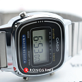 Компактный аксессуар с чёрной окантовкой циферблата имеет корпус из полимерного материала, защищающего японский кварцевый механизм. Он работает от батарейки, рассчитанной на 2 года. Стальной браслет дополнен регулируемым креплением для максимального комфорта носителя. Функции: календарь, секундомер, будильник, таймер.