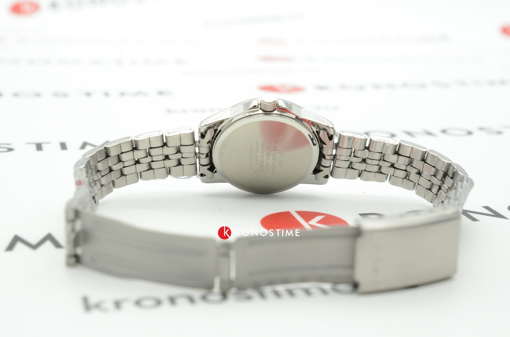 Гладкий, слегка отсвечивающий корпус серебристого цвета закреплен к элегантному браслету из нержавеющей стали. На круглом циферблате расположены крупные арабские цифры и стрелки, выгодно сочетающие в себе светло-зеленый и черный света. Простота дизайна, удобство и соблюдение правильных пропорций — вот главные преимущества данной модели. Кварцевый механизм. Срок службы батарейки составляет 3 года.