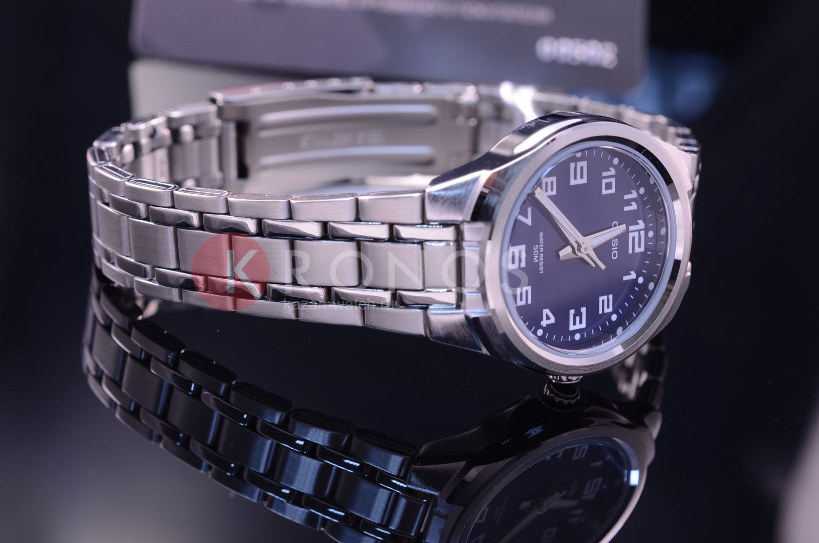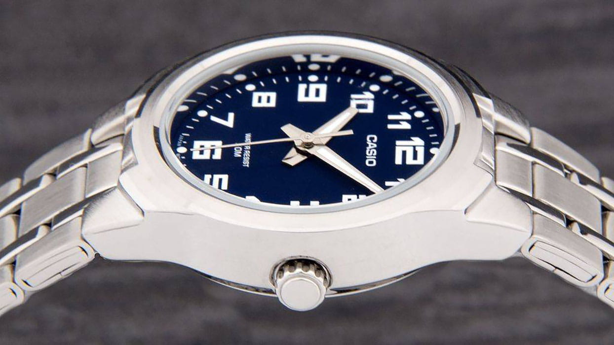 Наручные часы от Casio выполнены в повседневном стиле. Сдержанный дизайн и правильные пропорции позволяют аксессуару оставаться актуальным на долгие годы. Аккуратный, круглый корпус выполнен из прочной, гипоаллергенной латуни и прочно соединен с браслетом из нержавеющей стали. На циферблате насыщенно-синего цвета расположены отчетливые арабские цифры. Часы надежно защищены от повреждений минеральным стеклом. Благодаря кварцевому механизму отсутствует необходимость постоянно заводить часы. Водонепроницаемость равна 50 WR.
