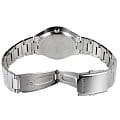 Слегка блестящий, серебристый браслет и аккуратный корпус выполнены из нержавеющей, высококачественной стали. На светло-сером циферблате круглой формы расположены арабские цифры, показатели дня недели и текущей даты. Сохранность часов обеспечивается прочным, устойчивым к царапинам минеральным стеклом. А точность хода - кварцевым механизмом. Срок службы батарейки составляет 3 года. Водонепроницаемость равна 50 WR.