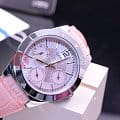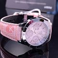 Аккуратный, серебристый корпус наручных часов сделан из нержавеющей, прочной стали. Светло-розовый, женственный ремень из натуральной кожи представляет собой удобную и долговечную деталь. Кроме временного отсчета, на циферблате также отображаются текущая дата и день недели. Выпуклое, минеральное стекло надежно защищает часы от негативных воздействий окружающей среды. Точность хода обеспечивается кварцевым механизмом. Срок эксплуатации батарейки составляет 3 года. Водонепроницаемость равна 50 WR.