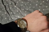 Серебристый циферблат с аналоговым отображением времени дополнен индикатором даты в положении "3 часа".