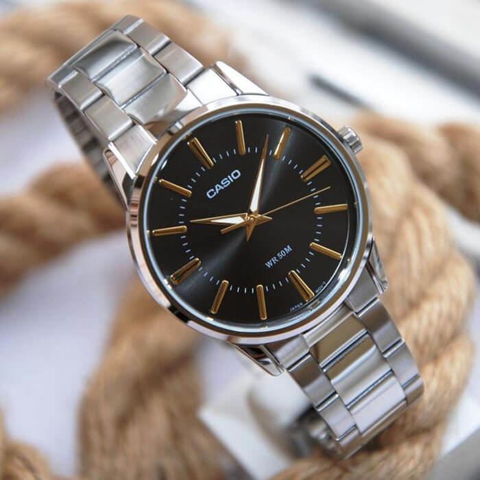 Наручные часы от Casio выдержаны в повседневном стиле. Стильный и практичный дизайн завоюет сердца тех, кто предпочитает привлекательность и удобство. Прочный корпус выполнен из гипоаллергенной латуни. Комфортный стальной браслет прочно закрепляется на запястье с помощью раскладывающейся застежки. Серебристая гладкая поверхность плавно отображает падающий свет. На циферблате традиционной формы расположены четкие временные отметки и изящные стрелки. Минеральное стекло. Водонепроницаемость равна 50 WR. Кварцевый тип механизма. Батарейка служит 3 года.
