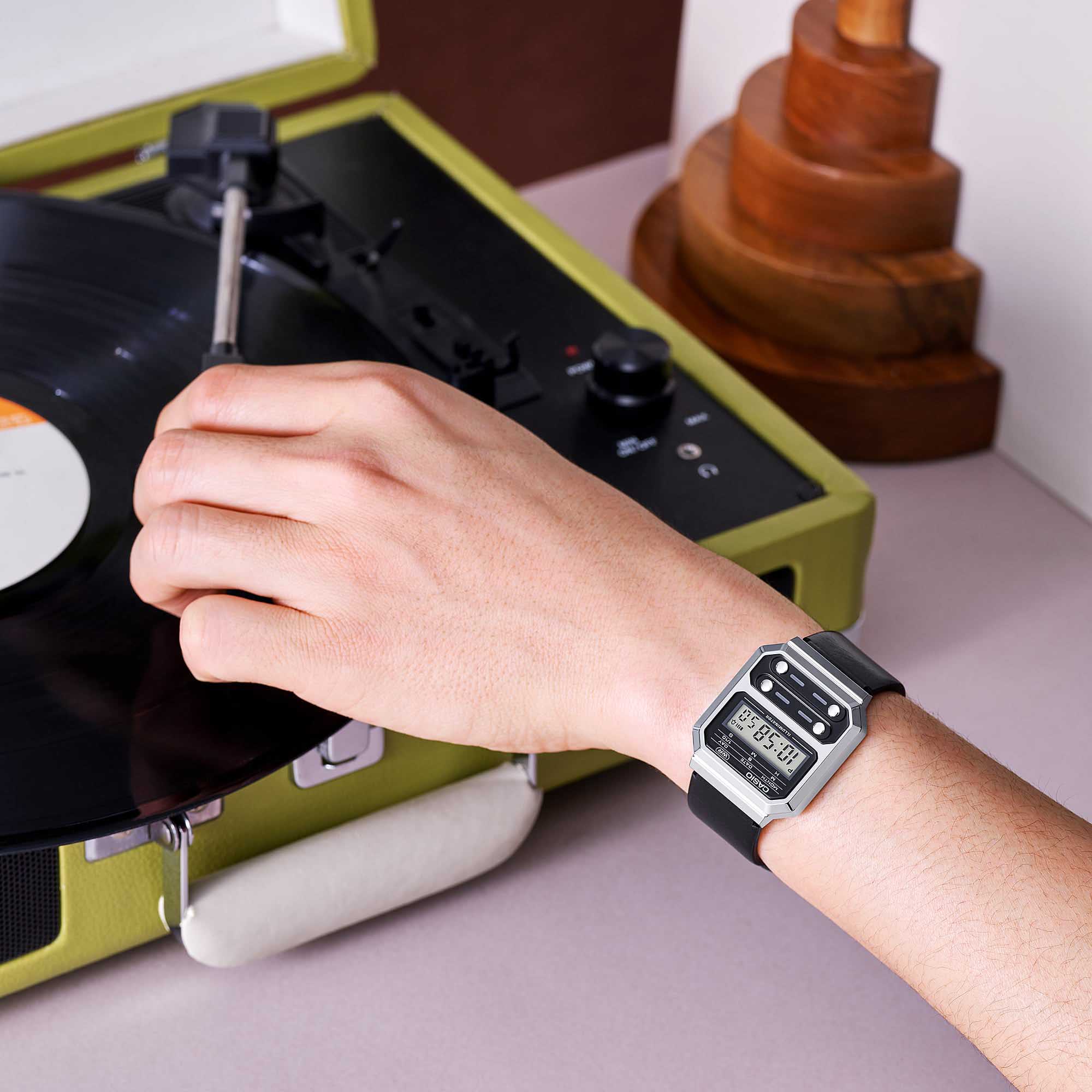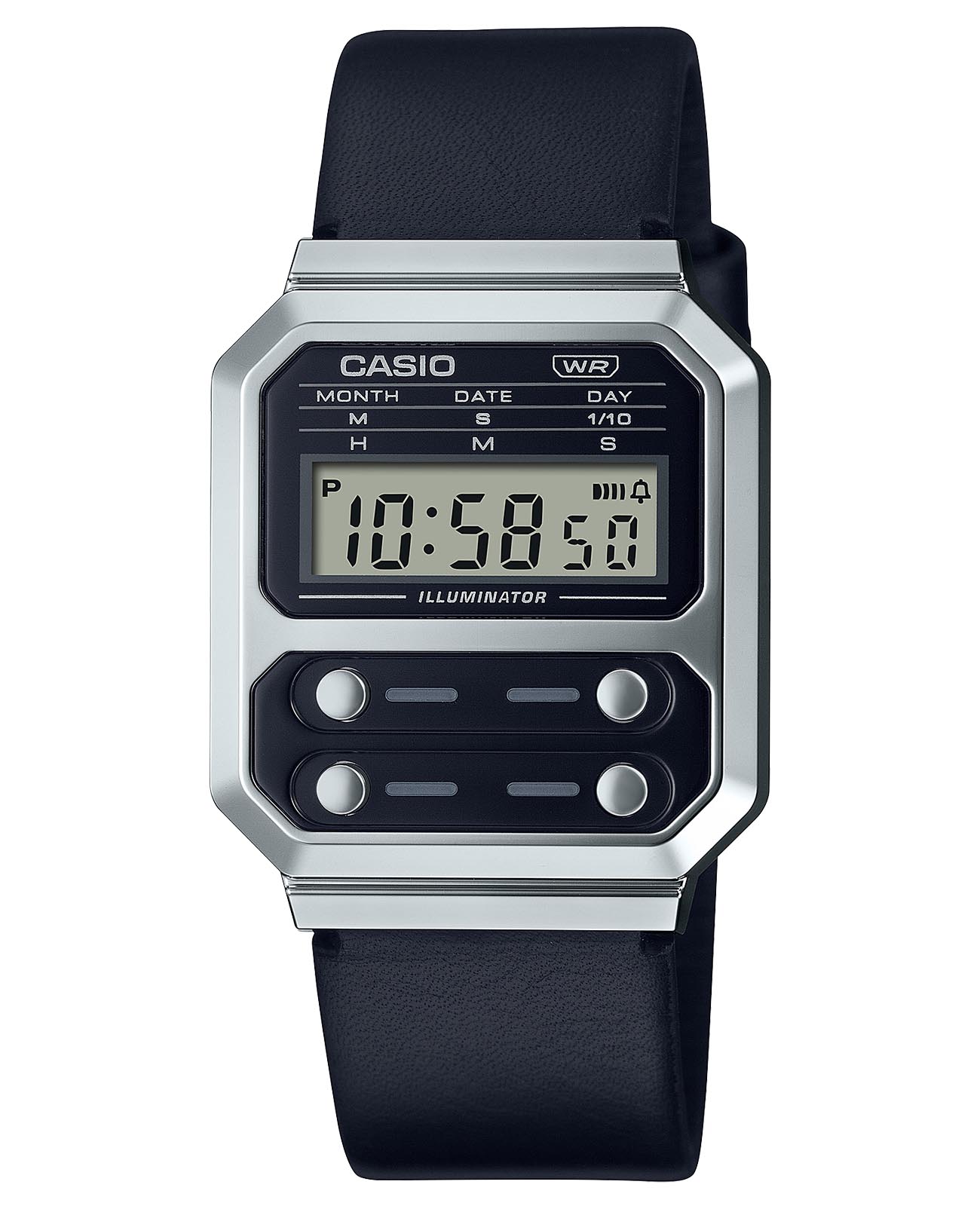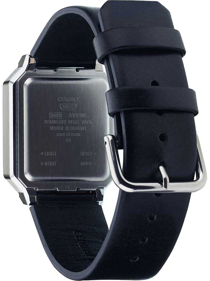 Унисекс наручные часы c хронографомХронографФункция позволяет измерять отрезки времени с особой точностью: часы, минуты, секунды. Верным признаком хронографа является наличие на циферблате 3 дополнительных окошек-счётчиков. Casio Vintage A100WEL-1AEF, кварцевый механизм с высокой точностью. Класс водозащиты: 30 метров, позволит защитить корпус от случайных брызг или капель дождя. Корпус часов изготовлен из пластика. Часы являются копией модели F-100, которая была первой моделью Casio в пластиковом корпусе. Отличительной чертой часов являются 4 кнопки на лицевой панели. Циферблат подсвечивается светодиодомСветодиодная подсветкаСветодиодная или LED-подсветка обеспечивает появление яркого холодного свечения за счёт LED-элементов - маленьких лампочек. Они потребляют минимальное количество энергии, чаще всего можно встретить 1 светодиод, в нижней части циферблата.. Цвет подсветки: оранжевый. СекундомерСекундомерСекундоме́р — прибор, способный измерять интервалы времени с точностью до долей секунды. с точностью показаний 1/10с и временем измерения 1ч. Водонепроницаемость в соответствии с DIN 8310/ISO 2281. Батарея рассчитана на 3 года. Ремешок с классической застежкой.
