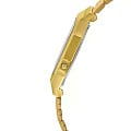 Браслет из нержавеющей стали с PVD-покрытиемPVDУльтратонкое покрытие наносится в технике вакуумного напыления, сочетает в себе нитрид титана особой прочности со слоем золота или оксида хрома. Несёт в себе декоративную или защитную функцию. в золотистом цвете и регулируемой раскладной застёжкойРаскладная застёжкаТакой тип застёжки используется только на браслетах из металла. Она никогда не раскрывается полностью, происходит разделение на 2 и более частей. Раскладывающая застёжка снизит вероятность потери часов к минимуму. обеспечивает комфортное ношение. Водонепроницаемость защищает модель от случайных брызг, делая её подходящей для повседневного использования.