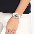 Японские женские часы Casio Baby-G BGA-150EF-7BDR из коллекции Baby-G. Серия, которая выражает спортивность и цвет, которые являются основой бренда Baby-G. Минеральное стеклоМинеральное стеклоМинеральное стекло представляет собой искусственно выращенный минерал кварца. Такое стекло отличается особой устойчивостью к повреждениям и царапинам. Уступает по некоторым качествам сапфировому стеклу. устойчивое к появлению царапин, обладающее высокой прозрачностью. Корпус часов изготовлен из стали с пластиковой вставкой. Ударопрочный корпусУдаропрочный корпусМеханизм заключён в корпус, выполненный из современных материалов, устойчивых к ударам, механическим повреждениям и падению с высоты: инновационный пластик, карбон, нержавеющая сталь, титан. защищает механизм от ударов и вибрации. Циферблат подсвечивается светодиодомСветодиодная подсветкаСветодиодная или LED-подсветка обеспечивает появление яркого холодного свечения за счёт LED-элементов - маленьких лампочек. Они потребляют минимальное количество энергии, чаще всего можно встретить 1 светодиод, в нижней части циферблата.. Функция Мирового времениМировое время Полезное часовое усложнение, отображающее время в основных городах и известных областях по всему миру, оно связано с часовыми поясами, удобно для путешественников и бизнесменов. , летнее время вкл/выкл. СекундомерСекундомерСекундоме́р — прибор, способный измерять интервалы времени с точностью до долей секунды. с точностью измерения 1/100 секунды и измерением до 23 часов 59 минут 59,99 cек. ТаймерТаймерОтсчитывает секунды в обратном направлении в заданном интервале времени. обратного отсчета (диапазон времени 24 часа), автоматический календарь, 12/24 отображение времени. 5 ежедневных будильниковБудильникБуди́льник — часы, в заданный момент времени подающие звуковой, световой и/или в редких случаях другой сигнал.. Класс водозащиты: 100 метров, позволит плавать без погружения. Ремешок из полимерного материала на стандартной застежке.