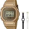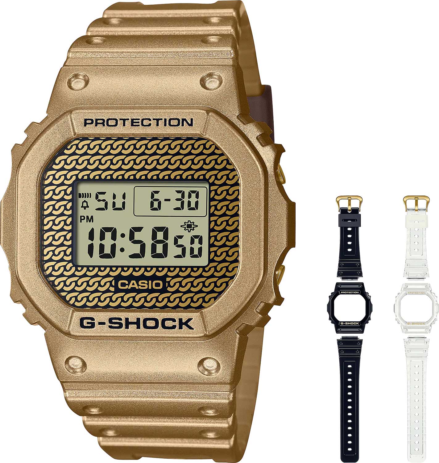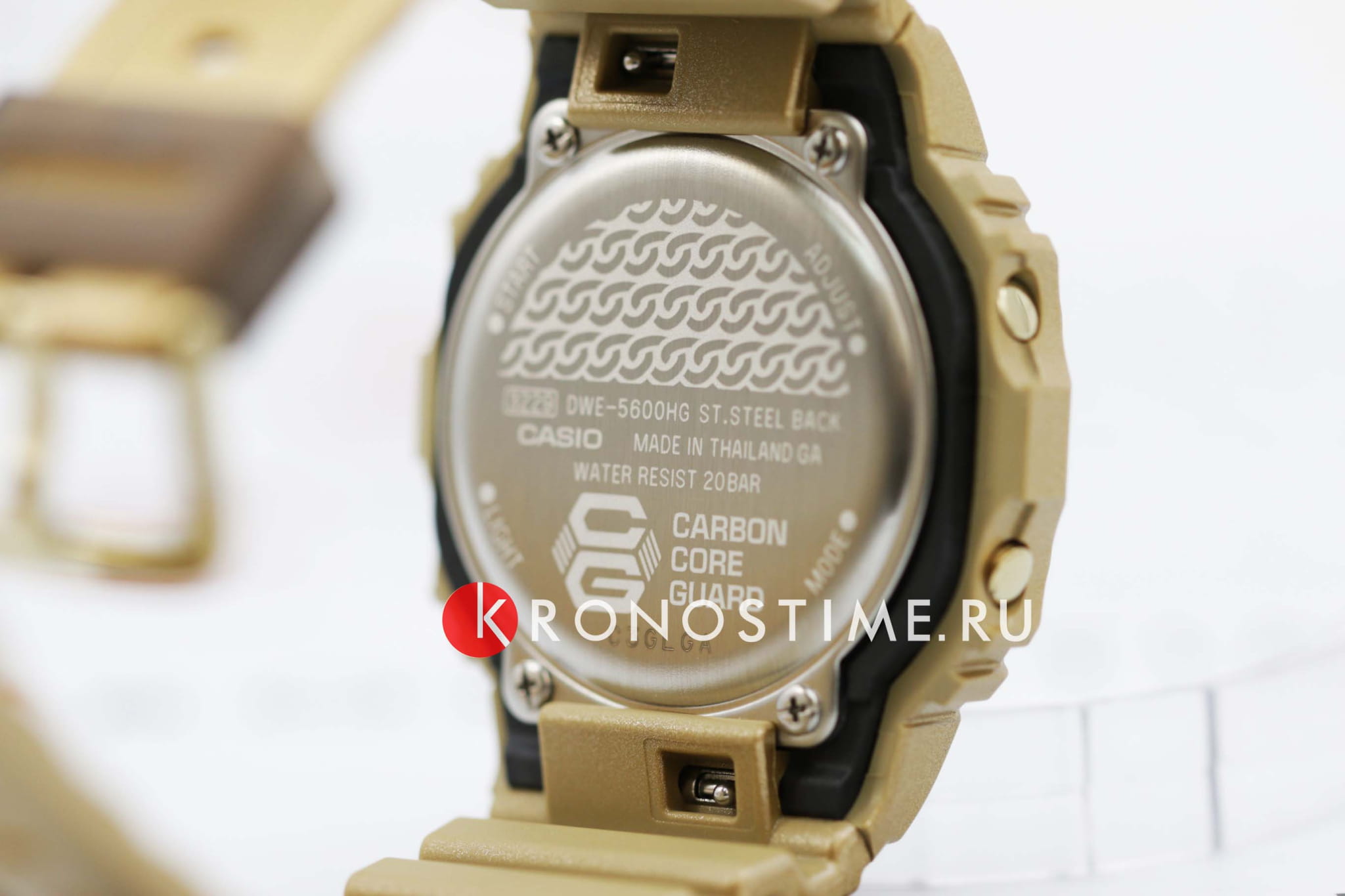 Японские мультифункциональные мужские часы Casio G-Shock DWE-5600HG-1, кварцевый механизм с высокой точностью. Класс водозащиты: 200 метров, позволит плавать, нырять и заниматься другими водными видами спорта. Корпус часов изготовлен из пластика золотистого цвета. Структура Carbon Core Guard. Пластиковый ударопрочный корпусУдаропрочный корпусМеханизм заключён в корпус, выполненный из современных материалов, устойчивых к ударам, механическим повреждениям и падению с высоты: инновационный пластик, карбон, нержавеющая сталь, титан. с карбоновыми волокнами более прочный и в то же время более легкий. Этот же материал защищает внутренний модуль от повреждений и деформаций при ударах. Электролюминесцентная подсветкаЭлектролюминесцентная подсветкаЭлектролюминесцентная панель устанавливается под ЖК-экраном часов, при нажатии кнопки электричество преобразуется в свет за счёт подачи напряжения на атомы фосфора, такой тип подсветки позволяет освещать весь циферблат. освещает весь циферблат, после отпускания кнопки свечение продолжается еще некоторое время. Световая индикация сигнала. Цвет подсветки: сине-зеленый. СекундомерСекундомерСекундоме́р — прибор, способный измерять интервалы времени с точностью до долей секунды. с двумя точностями показаний, сплит-хронографСплит-хронографИспользуется для измерения продолжительности нескольких временных отрезков, начинающихся одновременно, а заканчивающихся в разное время., таймер обратного отсчета с автоповтором. Типы сигналов: ежедневный, ежемесячный, каждый день определенного месяца, на определенную дату. Стальная задняя крышка крепится на четырёх винтах. Ремешок из полимерного материала с классической застежкой и возможностью быстрой замены. В комплекте 2 сменных ремешка и 2 безеля, которые позволяют создавать 27 различных комбинаций цветовых расцветок.