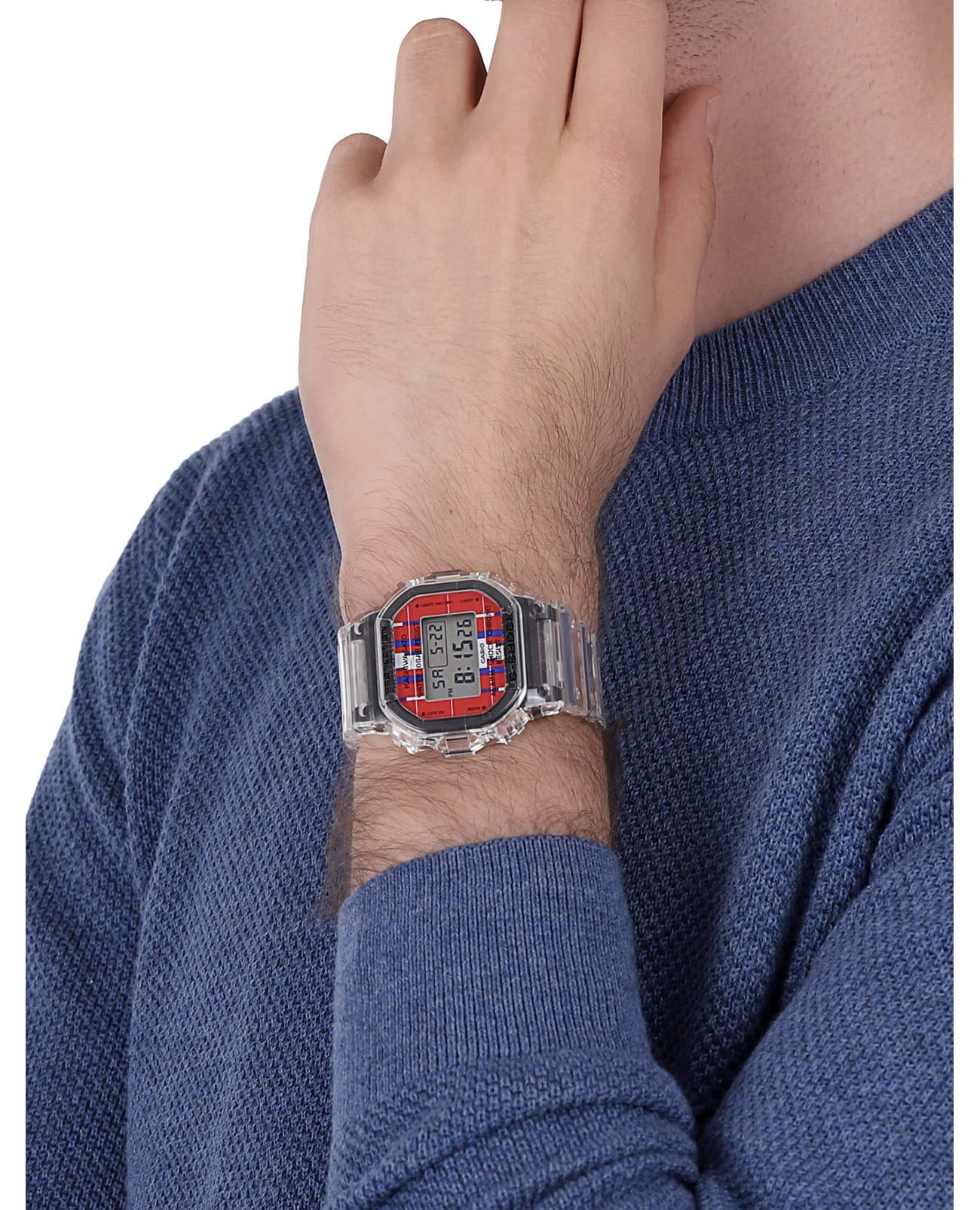 Брендовый джишок наценен на ценителей олдскульного квадратного корпуса, прототипом для которого стали первые модели Casio. . Наручные часы в прозрачном исполнении отображают время в цифровом формате, инверсионный дисплей имеет яркое обрамление. Противоударный корпусУдаропрочный корпусМеханизм заключён в корпус, выполненный из современных материалов, устойчивых к ударам, механическим повреждениям и падению с высоты: инновационный пластик, карбон, нержавеющая сталь, титан. с углеродными волокнами надёжно защищает японский кварцевый механизм от повреждений, последствий падения. Питание идёт от батарейки, рассчитанной на 2 года службы. Закаленное минеральное стекло. Комфортный полимерный ремешок. Электролюминесцентная подсветкаЭлектролюминесцентная подсветкаЭлектролюминесцентная панель устанавливается под ЖК-экраном часов, при нажатии кнопки электричество преобразуется в свет за счёт подачи напряжения на атомы фосфора, такой тип подсветки позволяет освещать весь циферблат.. Водостойкость 20 бар. Секундомер, автокалендарь, мировое времяМировое время Полезное часовое усложнение, отображающее время в основных городах и известных областях по всему миру, оно связано с часовыми поясами, удобно для путешественников и бизнесменов. , многофункциональный будильник, хронографХронографФункция позволяет измерять отрезки времени с особой точностью: часы, минуты, секунды. Верным признаком хронографа является наличие на циферблате 3 дополнительных окошек-счётчиков., таймер. Габариты:48,9мм x 43,8мм x 13,7мм