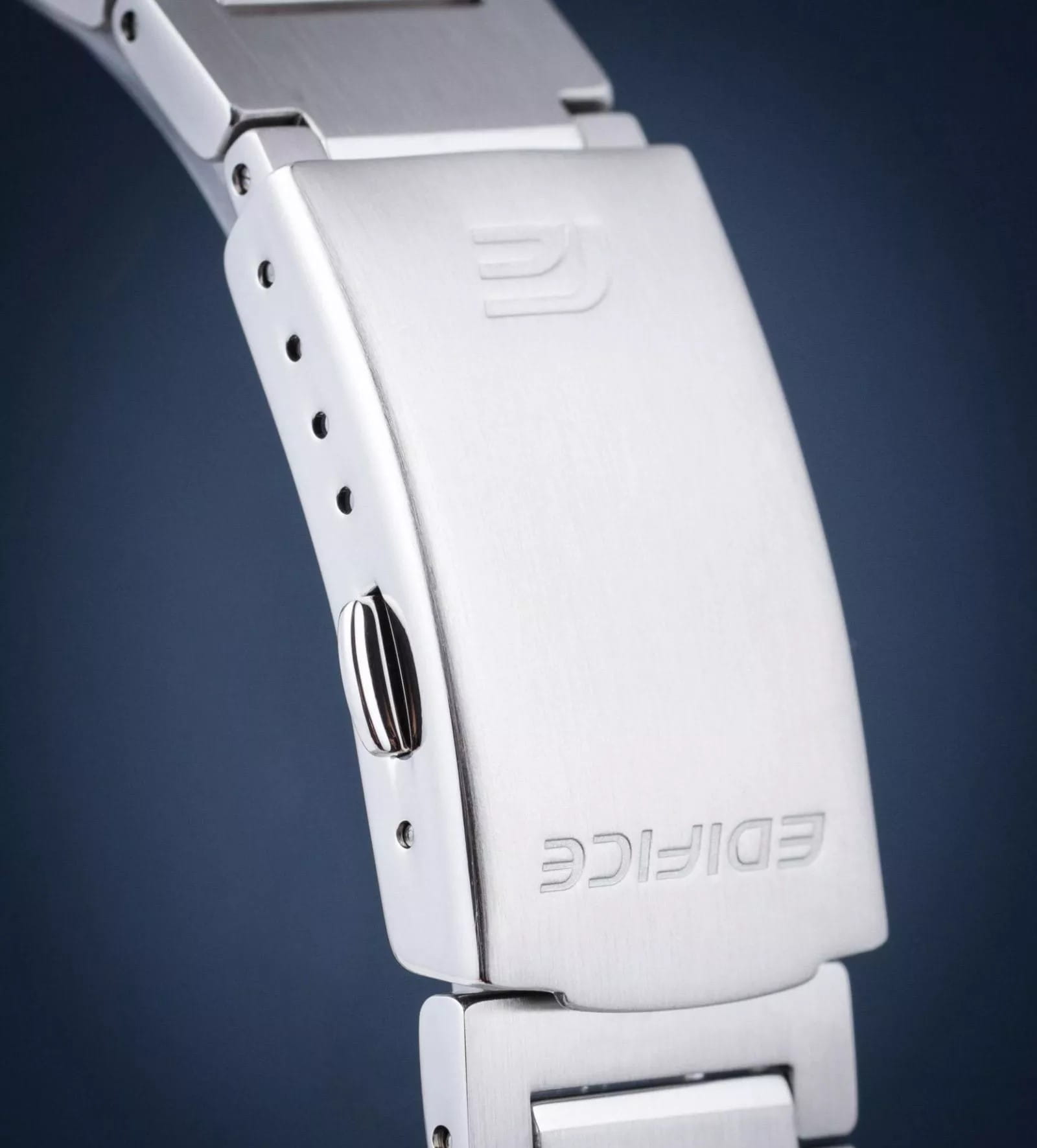 Японские мужские часы с сапфировым стеклом и хронографом Casio Edifice EFB-700D-2A, кварцевый механизм с высокой точностью. Сапфировое стекло устойчивое к появлению царапин, обладающее высокой прозрачностью. Класс водозащиты: 100 метров, позволит плавать, нырять и заниматься другими водными видами спорта. Корпус часов изготовлен из стали, серебристого цвета.
