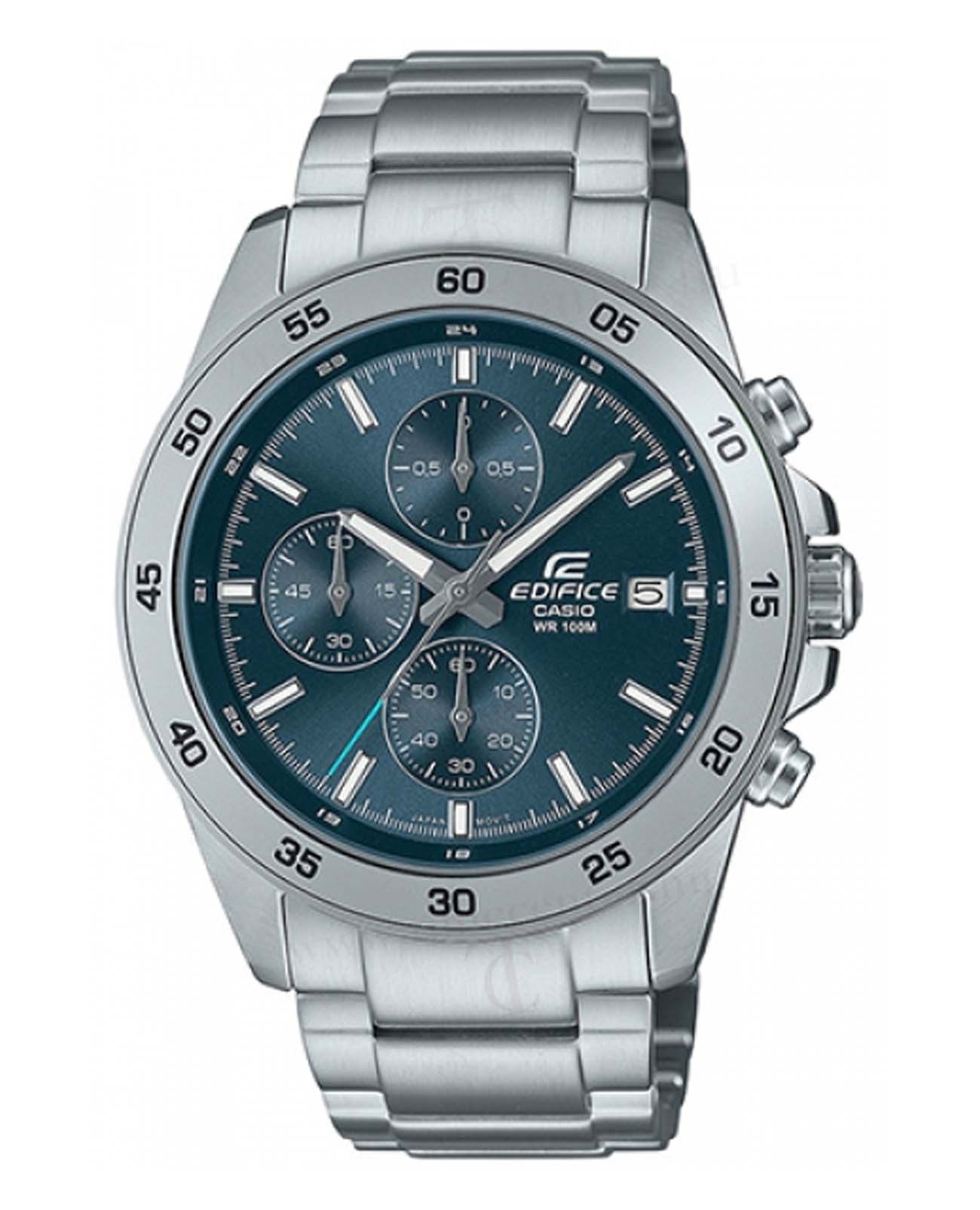 Мужские японские часы- хронографХронографФункция позволяет измерять отрезки времени с особой точностью: часы, минуты, секунды. Верным признаком хронографа является наличие на циферблате 3 дополнительных окошек-счётчиков. Casio Edifice EFR-574DB-3AVUDF (EFR-526D-2AVU). Корпус и браслет выполнены из нержавеющей стали. Минеральное стеклоМинеральное стеклоМинеральное стекло представляет собой искусственно выращенный минерал кварца. Такое стекло отличается особой устойчивостью к повреждениям и царапинам. Уступает по некоторым качествам сапфировому стеклу. устойчивое к мелким механическим повреждениям. Окошко даты и дня недели находится в положении 3 часа. Часы оснащены секундомеромСекундомерСекундоме́р — прибор, способный измерять интервалы времени с точностью до долей секунды.. Стрелки и метки с люминесцентным покрытиемЛюминесцентное покрытиеПозволяет считывать показания времени в темноте. Производители наносят на стрелки, часовые индексы, безель или поверхность циферблата светонакопительный состав, дающий холодное свечение.. Класс водозащиты: 100 метров, позволит плавать, нырять и заниматься другими водными видами спорта. Стальной браслет на раскладной застёжкеРаскладная застёжкаТакой тип застёжки используется только на браслетах из металла. Она никогда не раскрывается полностью, происходит разделение на 2 и более частей. Раскладывающая застёжка снизит вероятность потери часов к минимуму..
