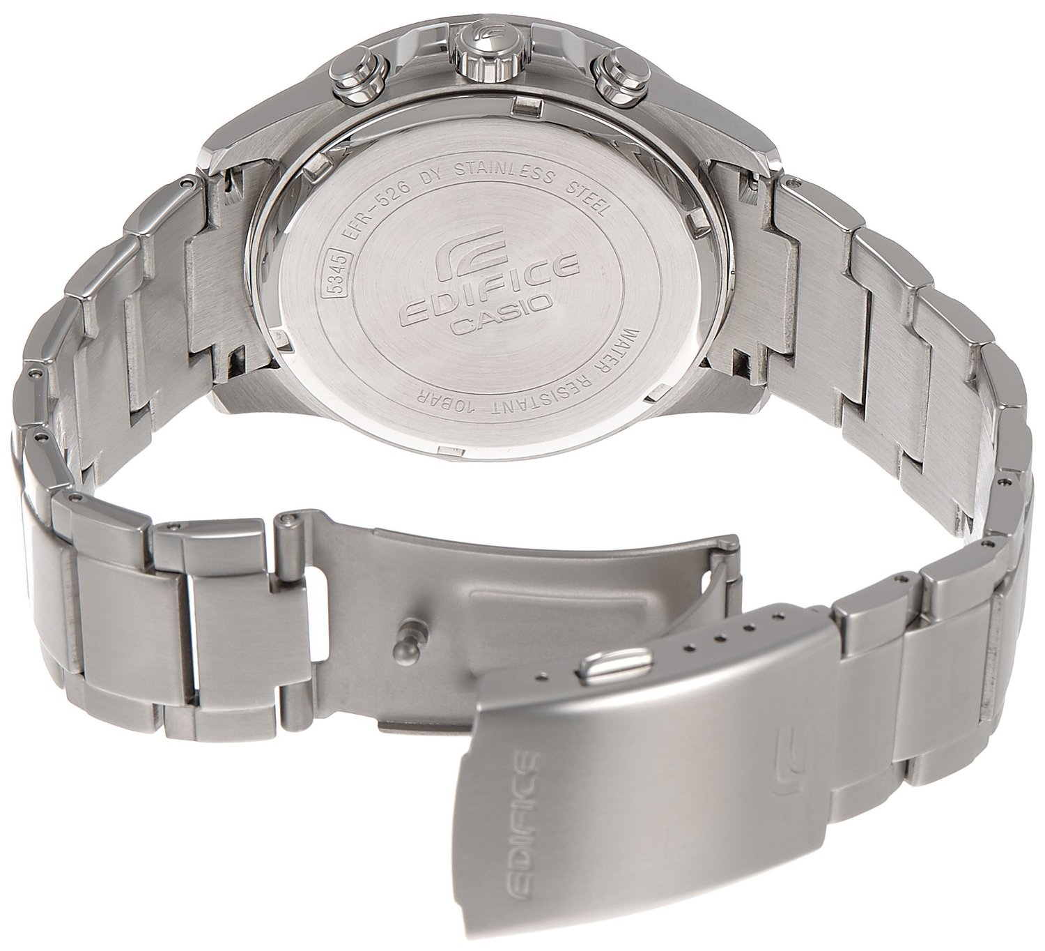 Японские мужские часы с хронографом Casio Edifice EFR-526D-5CVUDF (EFR-526D-5C), кварцевый механизм с высокой точностью. Класс водозащиты: 100 метров, позволит плавать, нырять и заниматься другими водными видами спорта. Корпус часов изготовлен из стали, цвета.
