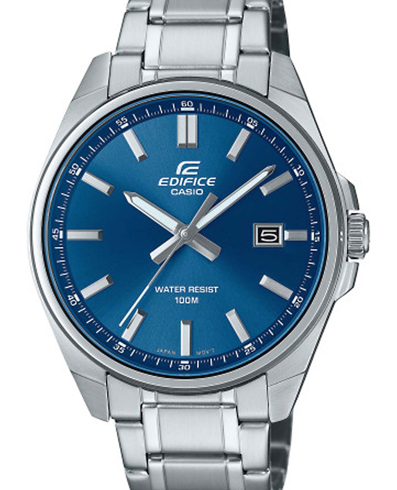Японские мужские кварцевые часы Casio Edifice EFV-150D-2AVUDF, кварцевый механизм с высокой точностью. Минеральное стеклоМинеральное стеклоМинеральное стекло представляет собой искусственно выращенный минерал кварца. Такое стекло отличается особой устойчивостью к повреждениям и царапинам. Уступает по некоторым качествам сапфировому стеклу. устойчивое к мелким механическим повреждениям. Корпус часов изготовлен из нержавеющей стали. Подсветка NeobriteПодсветка NeobriteИспользование светонакопительных составов на основе сульфида цинка или алюмината стронция, яркий свет можно наблюдать на протяжении 6-10 часов после «зарядки» часов около источника света. обеспечивает длительное послесвечение в темноте даже после кратковременного нахождения на свету. Циферблат с метками в виде штрихов. Окошко даты в положении 3 часов. Класс водозащиты: 100 метров, позволит плавать, нырять и заниматься другими водными видами спорта. Стальной браслет на раскладной застёжкеРаскладная застёжкаТакой тип застёжки используется только на браслетах из металла. Она никогда не раскрывается полностью, происходит разделение на 2 и более частей. Раскладывающая застёжка снизит вероятность потери часов к минимуму..
