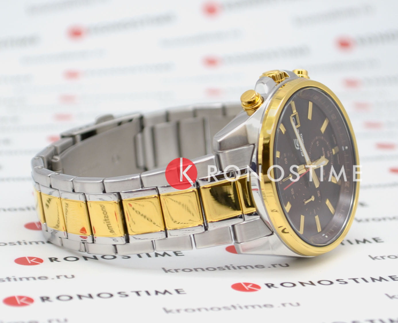 Японские мужские часы-хронографХронографФункция позволяет измерять отрезки времени с особой точностью: часы, минуты, секунды. Верным признаком хронографа является наличие на циферблате 3 дополнительных окошек-счётчиков. Casio Edifice EFV-610SG-5A, кварцевый механизм с высокой точностью. Класс водозащиты: 100 метров, позволит плавать, нырять и заниматься другими водными видами спорта. Корпус часов изготовлен из стали с IP-покрытиемIP-покрытиеМетод ионного напыления. Демонстрирует повышенную устойчивость к истиранию, окислению и химическим веществам. Под воздействием высокого давления и температуры около 1500°C молекулы металла надёжно соединяются с частицами корпуса часов.. Раскладная застёжкаРаскладная застёжкаТакой тип застёжки используется только на браслетах из металла. Она никогда не раскрывается полностью, происходит разделение на 2 и более частей. Раскладывающая застёжка снизит вероятность потери часов к минимуму. с фиксатором. Светонакопительное покрытие NeobriteПодсветка NeobriteИспользование светонакопительных составов на основе сульфида цинка или алюмината стронция, яркий свет можно наблюдать на протяжении 6-10 часов после «зарядки» часов около источника света. обеспечивает длительное послесвечение в темноте даже после кратковременного нахождения на свету. СекундомерСекундомерСекундоме́р — прибор, способный измерять интервалы времени с точностью до долей секунды. с разрешением показаний 1/10 сек и временем измерения 1 ч. Циферблат с окошком даты.