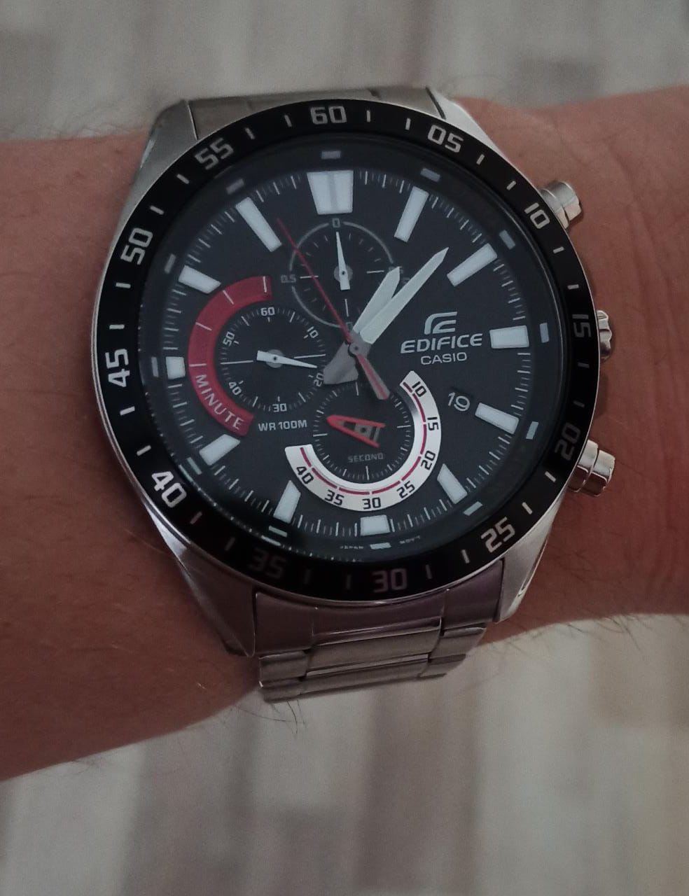 Японские мужские часы с хронографом Casio Edifice EFV-620D-1A4VUDF (EFV-620D-1A4), кварцевый механизм с высокой точностью. Класс водозащиты: 100 метров, позволит плавать, нырять и заниматься другими водными видами спорта. Корпус часов изготовлен из стали, цвета.
