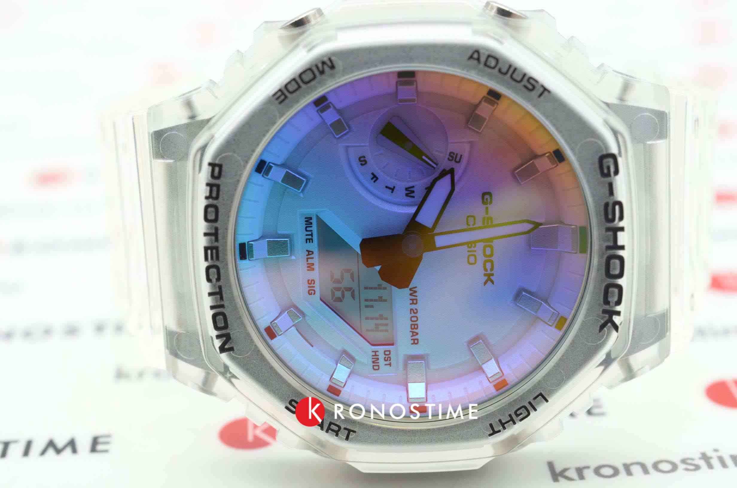 Японские мужские часы противоударные Casio G-Shock GA-2100SRS-7A, электронный механизм с высокой точностью. Класс водозащиты: 200 метров, позволит плавать, нырять и заниматься другими водными видами спорта. Корпус часов изготовлен из карбона, прозрачного цвета.