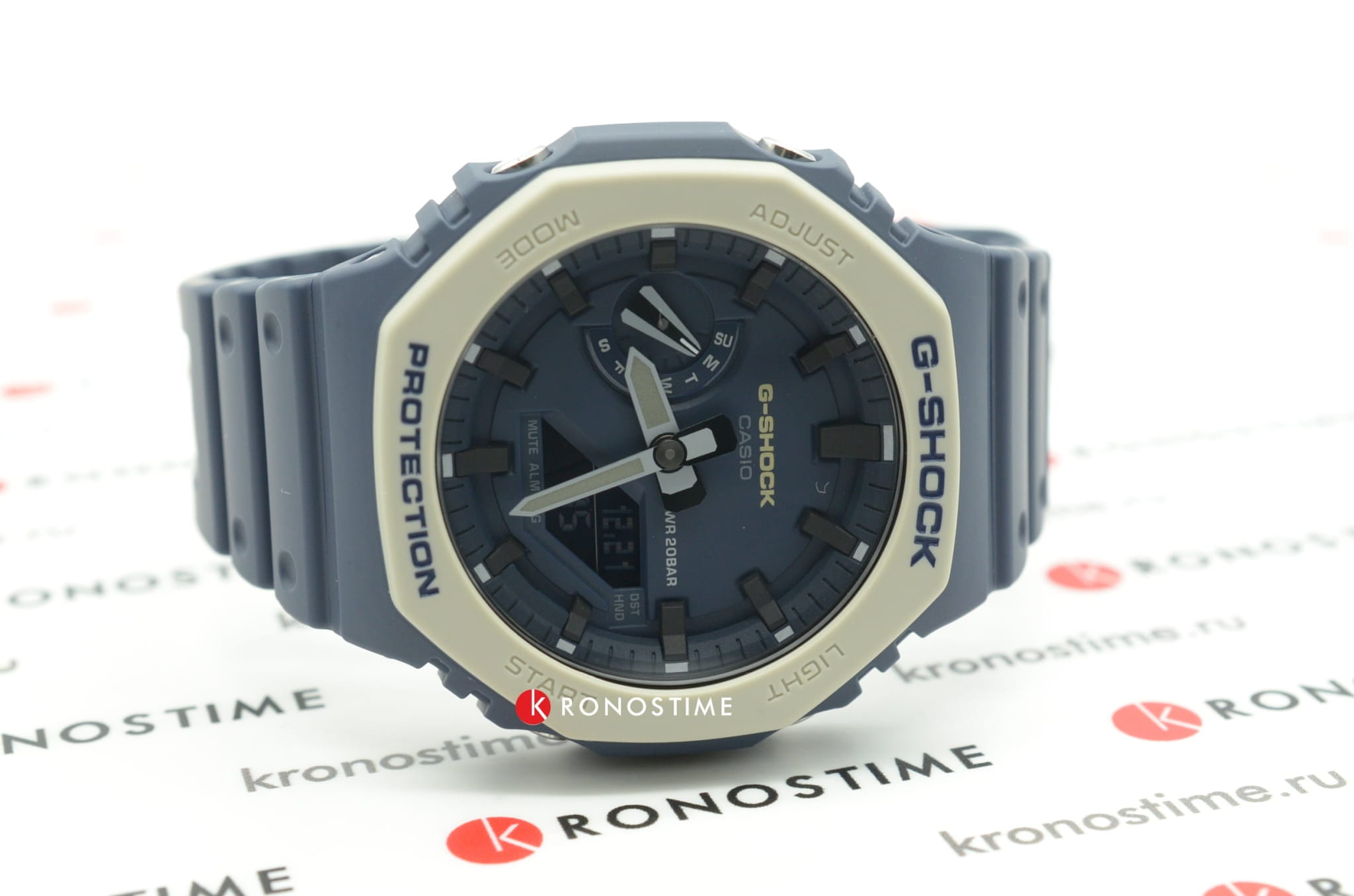 Мужские японские часы Casio G-Shock GA-2110ET-2AER из коллекции обрадуют ценителей надёжности и оригинальных вещей. Аксессуар в синем цвете поможет дополнить повседневный образ. Внимание перенимает на себя безельБезельВнешний ободок, закрепляющий стекло. В спортивных часах так называется поворотное кольцо с делениями на циферблате, выполняет роль таймера – замеряет отрезки времени на шкале. Неподвижный безель – элемент декора. Однонаправленно вращающийся безель на дайверских часах позволяет фиксировать моменты погружения и выныривания на поверхность., выполненный в форме октагона. Благодаря конструкции Carbon Core GuardCarbon Core Guard Новейшая структура корпуса, разработанная Casio. Полиуретановая пластина дополнительно усилена карбоновыми вставками, что придаёт специальную защиту от механических повреждений. Карбон отличается лёгкостью и прочностью. для тонкого ударопрочного корпусаУдаропрочный корпусМеханизм заключён в корпус, выполненный из современных материалов, устойчивых к ударам, механическим повреждениям и падению с высоты: инновационный пластик, карбон, нержавеющая сталь, титан. (11,8 мм) часы получили невероятную лёгкость, повышенную устойчивость к падению, повреждениям. Обновлённое крепление полимерного ремешка позволяет менять его в считанные секунды. Японский кварцевый механизм получает энергию от батарейки, рассчитанной на 3 года работы. ЛюминесцентнаяЛюминесцентное покрытиеПозволяет считывать показания времени в темноте. Производители наносят на стрелки, часовые индексы, безель или поверхность циферблата светонакопительный состав, дающий холодное свечение. и светодиодная подсветкаСветодиодная подсветкаСветодиодная или LED-подсветка обеспечивает появление яркого холодного свечения за счёт LED-элементов - маленьких лампочек. Они потребляют минимальное количество энергии, чаще всего можно встретить 1 светодиод, в нижней части циферблата.. Минеральное стекло. Сохранение водонепроницаемости до 10 бар. Будильник, хронографХронографФункция позволяет измерять отрезки времени с особой точностью: часы, минуты, секунды. Верным признаком хронографа является наличие на циферблате 3 дополнительных окошек-счётчиков., таймер, мировое времяМировое время Полезное часовое усложнение, отображающее время в основных городах и известных областях по всему миру, оно связано с часовыми поясами, удобно для путешественников и бизнесменов. , секундомер, вечный календарьВечный календарьКлассическое часовое усложнение, представляющее собой календарь, рассчитанный на несколько лет вперёд (стандартно – до 2099 года). Определяет текущую дату, день недели, месяц.. Габариты: 48,5 x 45,4 x 11,8 мм.