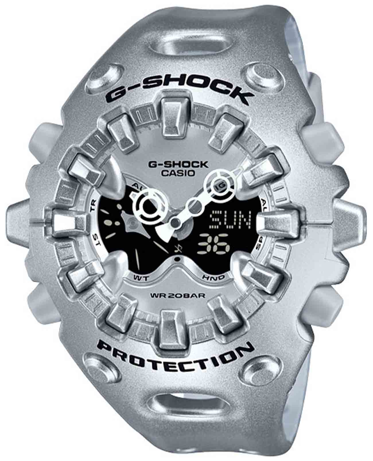 Мужские наручные часы Casio G-Shock GA-V01A-8A — это яркое сочетание футуристического дизайна и передовых технологий. Модель выполнена в ударопрочном корпусеУдаропрочный корпусМеханизм заключён в корпус, выполненный из современных материалов, устойчивых к ударам, механическим повреждениям и падению с высоты: инновационный пластик, карбон, нержавеющая сталь, титан. из пластика и оснащена аналого-цифровым отображением времени, что делает их универсальными как для повседневной жизни, так и для активного образа жизни. Часы работают на кварцевом механизме, обеспечивающем точность хода и минимальное обслуживание. Батарейка рассчитана на 10 лет использования, что делает модель особенно экономичной и удобной в эксплуатации. Часы обладают водонепроницаемостью до WR200, позволяют плавать, нырять и заниматься другими водными видами спорта без опасений за сохранность механизма. Циферблат дополнен функцией мирового времени, окошком даты, а также возможностью переключения между 12-ти и 24-х часовым форматом времени. Присутствуют функции хронографа , секундомера с точностью 1/100 секунды, таймераТаймерОтсчитывает секунды в обратном направлении в заданном интервале времени. обратного отсчёта на 24 часа, пяти ежедневных будильниковБудильникБуди́льник — часы, в заданный момент времени подающие звуковой, световой и/или в редких случаях другой сигнал. и почасового сигнала. Также реализована функция временного перемещения стрелок, чтобы обеспечить беспрепятственный обзор цифровых показаний. Циферблат защищен прочным минеральным стекломМинеральное стеклоМинеральное стекло представляет собой искусственно выращенный минерал кварца. Такое стекло отличается особой устойчивостью к повреждениям и царапинам. Уступает по некоторым качествам сапфировому стеклу., а ремешок изготовлен из высококачественного полимерного материала, обеспечивающего комфорт при ношении.Светодиодная подсветкаСветодиодная подсветкаСветодиодная или LED-подсветка обеспечивает появление яркого холодного свечения за счёт LED-элементов - маленьких лампочек. Они потребляют минимальное количество энергии, чаще всего можно встретить 1 светодиод, в нижней части циферблата. освещает весь циферблат, после отпускания кнопки свечение продолжается еще некоторое время. Эта модель — настоящий прорыв в дизайне линейки G-Shock: футуристический внешний вид, вдохновлённый научной фантастикой, и богатый набор функций делают их не просто аксессуаром, а верным спутником в любом деле. Это идеальный выбор для тех, кто ценит стиль, надёжность и инновационные технологии.
