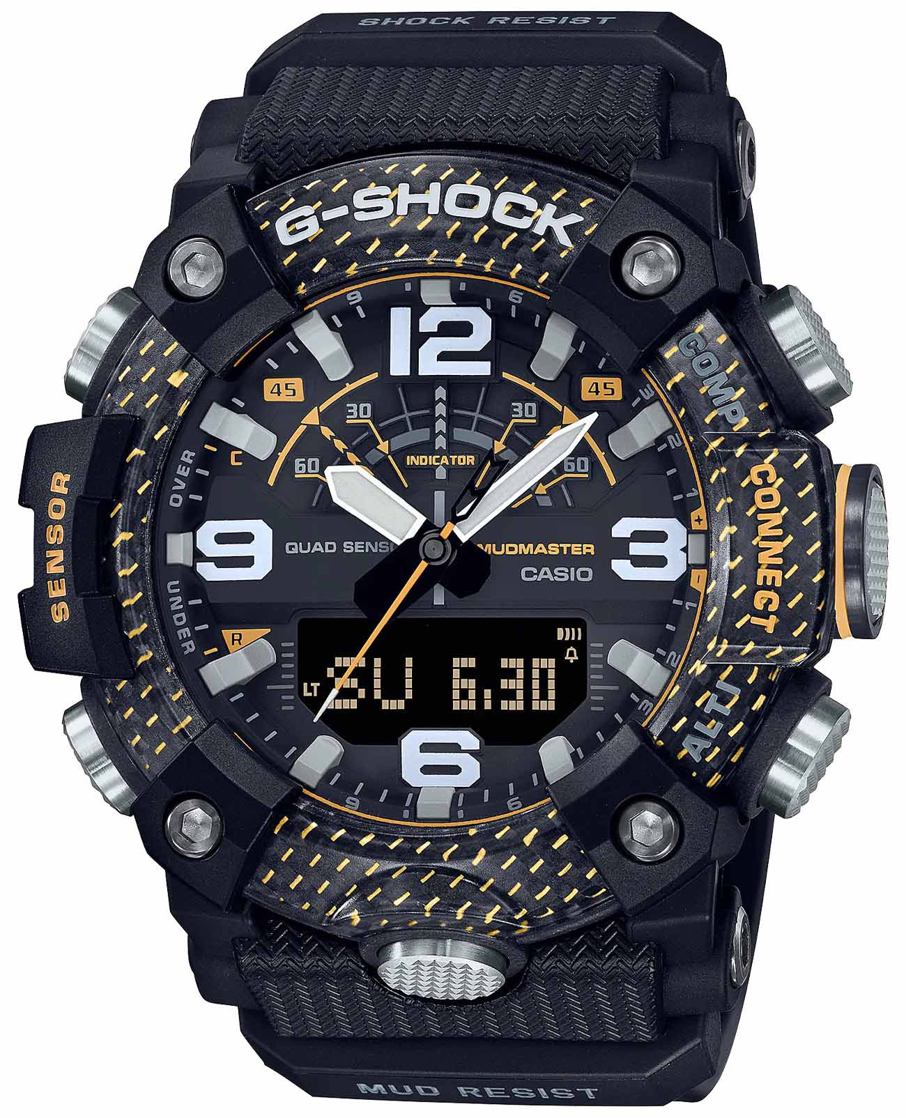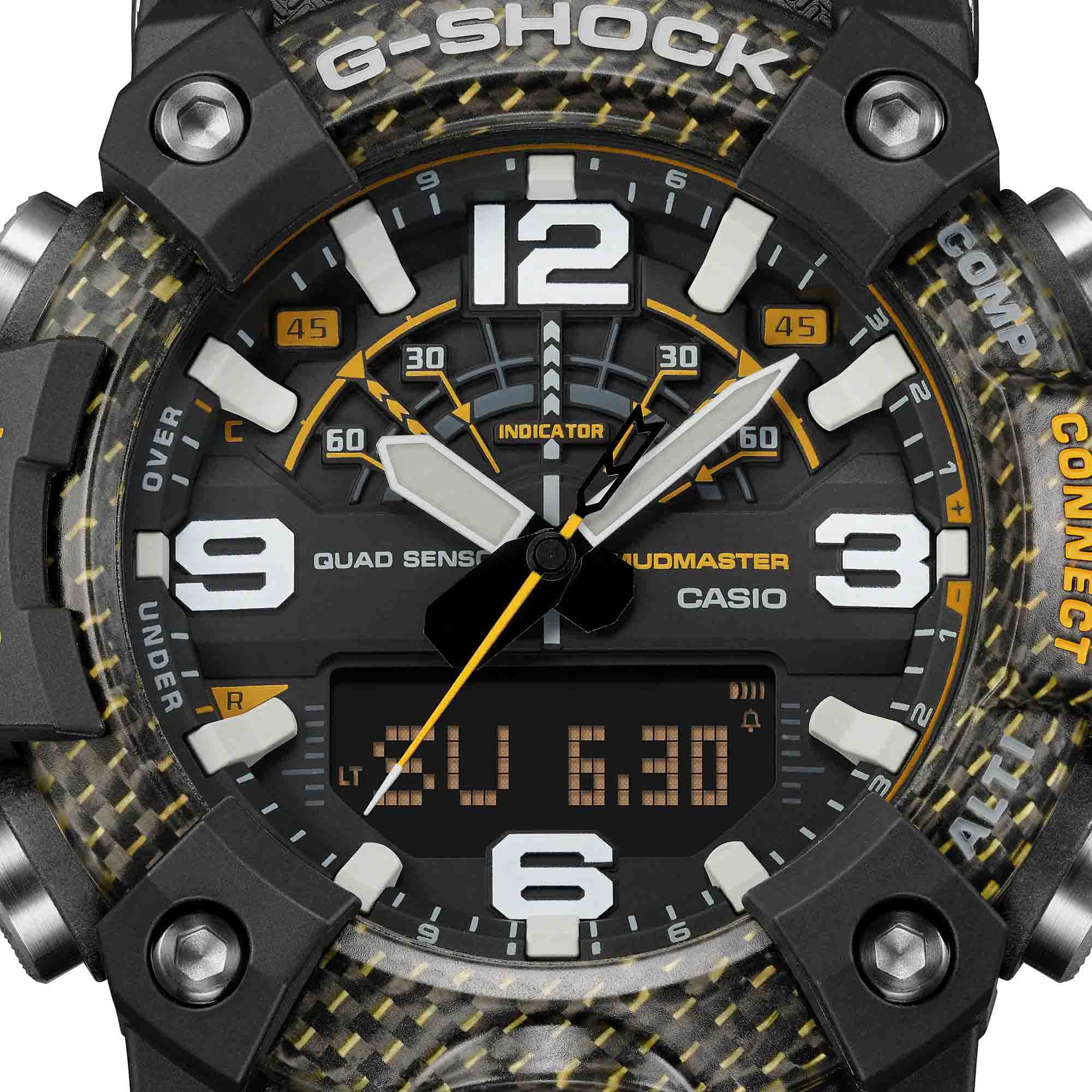 Мужские наручные часы Casio G-Shock GG-B100Y-1A, кварцевый механизм с высокой точностью. Класс водозащиты: 200 метров, позволит плавать, нырять и заниматься другими водными видами спорта. Корпус часов изготовлен из карбона и пластика. Их корпус выполнен в соответствии с концепцией Carbon Core GuardCarbon Core Guard Новейшая структура корпуса, разработанная Casio. Полиуретановая пластина дополнительно усилена карбоновыми вставками, что придаёт специальную защиту от механических повреждений. Карбон отличается лёгкостью и прочностью.. Пластина из привычного полиуретана усилена карбоновыми вставками и надежно защищает модуль от всевозможных внешних воздействий. Карбон значительно прочнее полиуретана и при этом легче его. БезельБезельВнешний ободок, закрепляющий стекло. В спортивных часах так называется поворотное кольцо с делениями на циферблате, выполняет роль таймера – замеряет отрезки времени на шкале. Неподвижный безель – элемент декора. Однонаправленно вращающийся безель на дайверских часах позволяет фиксировать моменты погружения и выныривания на поверхность., состоящий из двух внешних слоев полиуретана и внутреннего слоя карбона, причем лицевой полиуретан прозрачный, что позволяет видеть красивую углеткань. А задняя крышка – двухслойная: сталь и стеклопластик. Часы связаны со смартфоном по BluetoothBluetoothСовременная технология, позволяющая синхронизировать часы с телефоном и переносить данные. Часы с Bluetooth расширяют возможности вашего смартфона и делают его использование ещё более удобным., все показания квадро-датчика могут заноситься в память благодаря приложению G-Shock Connected. Индикация времени восхода и захода солнца в той точке планеты, где находятся часы. Есть функция поиска телефона, включения/отключения звука. Выпуклое минеральное стеклоМинеральное стеклоМинеральное стекло представляет собой искусственно выращенный минерал кварца. Такое стекло отличается особой устойчивостью к повреждениям и царапинам. Уступает по некоторым качествам сапфировому стеклу. устойчивое к мелким механическим повреждениям. Подсветка NeobriteПодсветка NeobriteИспользование светонакопительных составов на основе сульфида цинка или алюмината стронция, яркий свет можно наблюдать на протяжении 6-10 часов после «зарядки» часов около источника света. и светодиодная подсветкаСветодиодная подсветкаСветодиодная или LED-подсветка обеспечивает появление яркого холодного свечения за счёт LED-элементов - маленьких лампочек. Они потребляют минимальное количество энергии, чаще всего можно встретить 1 светодиод, в нижней части циферблата. освещают весь циферблат, после отпускания кнопки свечение продолжается еще некоторое время. Благодаря технологии Smartphone Link, часы синхронизируются через смартфон с сервером точного времени 4 раза в сутки. Отображение мирового времениМировое время Полезное часовое усложнение, отображающее время в основных городах и известных областях по всему миру, оно связано с часовыми поясами, удобно для путешественников и бизнесменов. в основных городах и конкретных областях по всему миру. После первичной настройки автоматический вечный календарьВечный календарьКлассическое часовое усложнение, представляющее собой календарь, рассчитанный на несколько лет вперёд (стандартно – до 2099 года). Определяет текущую дату, день недели, месяц. всегда 