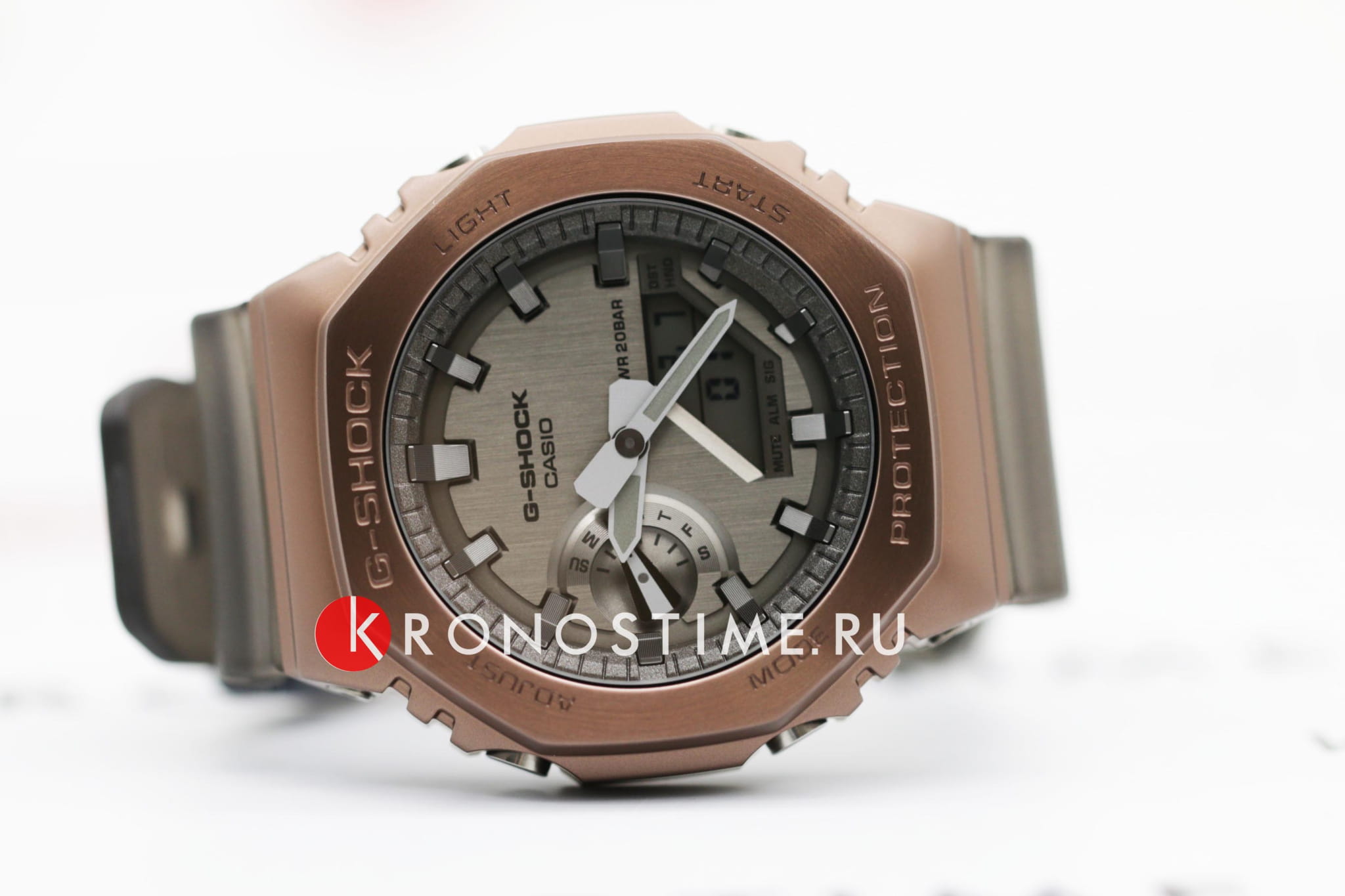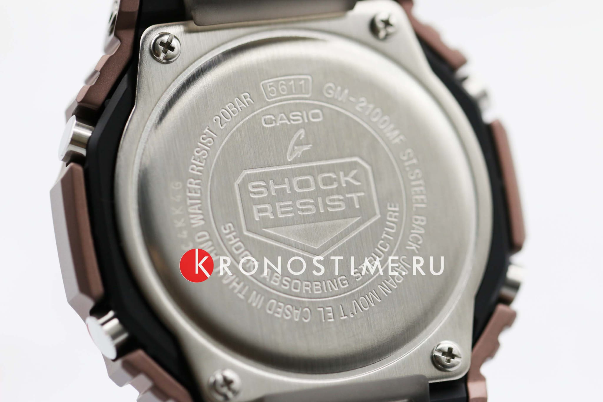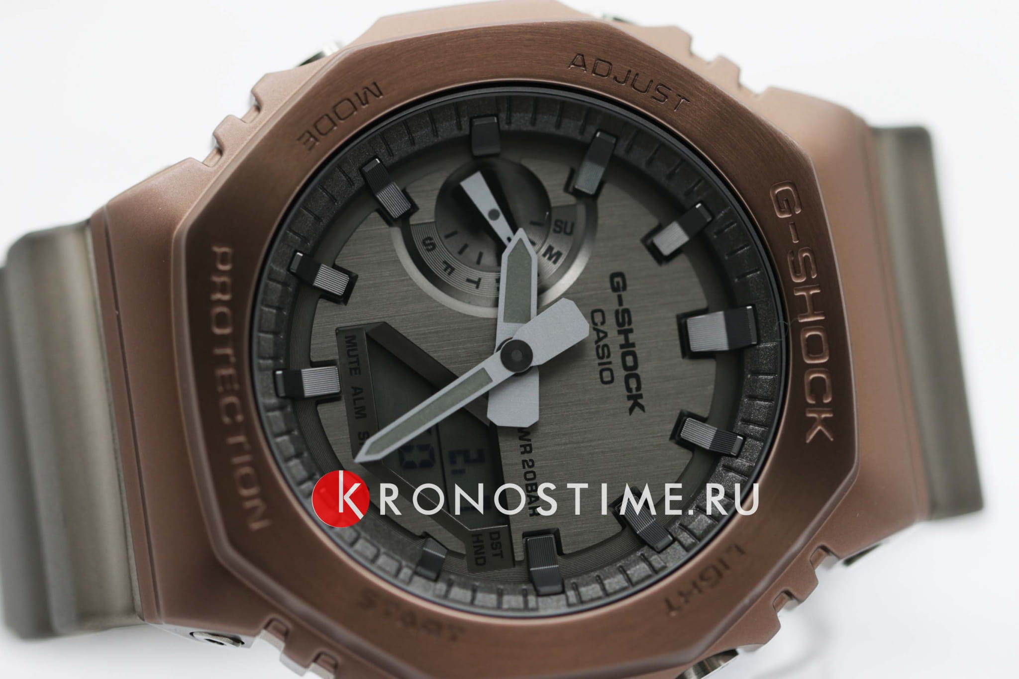 Японские лимитированные мужские часы с хронографомХронографФункция позволяет измерять отрезки времени с особой точностью: часы, минуты, секунды. Верным признаком хронографа является наличие на циферблате 3 дополнительных окошек-счётчиков. Casio G-Shock GM-2100MF-5A, кварцевый механизм с высокой точностью. Класс водозащиты: 200 метров, позволит плавать, нырять и заниматься другими водными видами спорта. Корпус часов изготовлен из стали с IP-покрытиемIP-покрытиеМетод ионного напыления. Демонстрирует повышенную устойчивость к истиранию, окислению и химическим веществам. Под воздействием высокого давления и температуры около 1500°C молекулы металла надёжно соединяются с частицами корпуса часов.. Ударопрочный корпусУдаропрочный корпусМеханизм заключён в корпус, выполненный из современных материалов, устойчивых к ударам, механическим повреждениям и падению с высоты: инновационный пластик, карбон, нержавеющая сталь, титан. защищает механизм от ударов и вибрации. Функция парный иллюминатор обеспечивает подсветку не только аналогового циферблата, но и цифрового дисплея. Подсветка NeobriteПодсветка NeobriteИспользование светонакопительных составов на основе сульфида цинка или алюмината стронция, яркий свет можно наблюдать на протяжении 6-10 часов после «зарядки» часов около источника света. обеспечивает длительное послесвечение в темноте даже после кратковременного нахождения на свету. СекундомерСекундомерСекундоме́р — прибор, способный измерять интервалы времени с точностью до долей секунды. с двумя точностями показаний: 1/100с и 1с и временем измерения 24ч. Сплит-хронографСплит-хронографИспользуется для измерения продолжительности нескольких временных отрезков, начинающихся одновременно, а заканчивающихся в разное время.. Таймер обратного отсчета от 1с до 24ч. Мировое времяМировое время Полезное часовое усложнение, отображающее время в основных городах и известных областях по всему миру, оно связано с часовыми поясами, удобно для путешественников и бизнесменов. – 48 городов (31 часовой пояс), всемирное координированное время (UTCUTCВсемирное кординационное время, не имеющее привязки к географическому положению Гринвича, основывается на атомном отсчёте времени. Регулировка времени осуществляется более точно, чем устаревшее GMT.