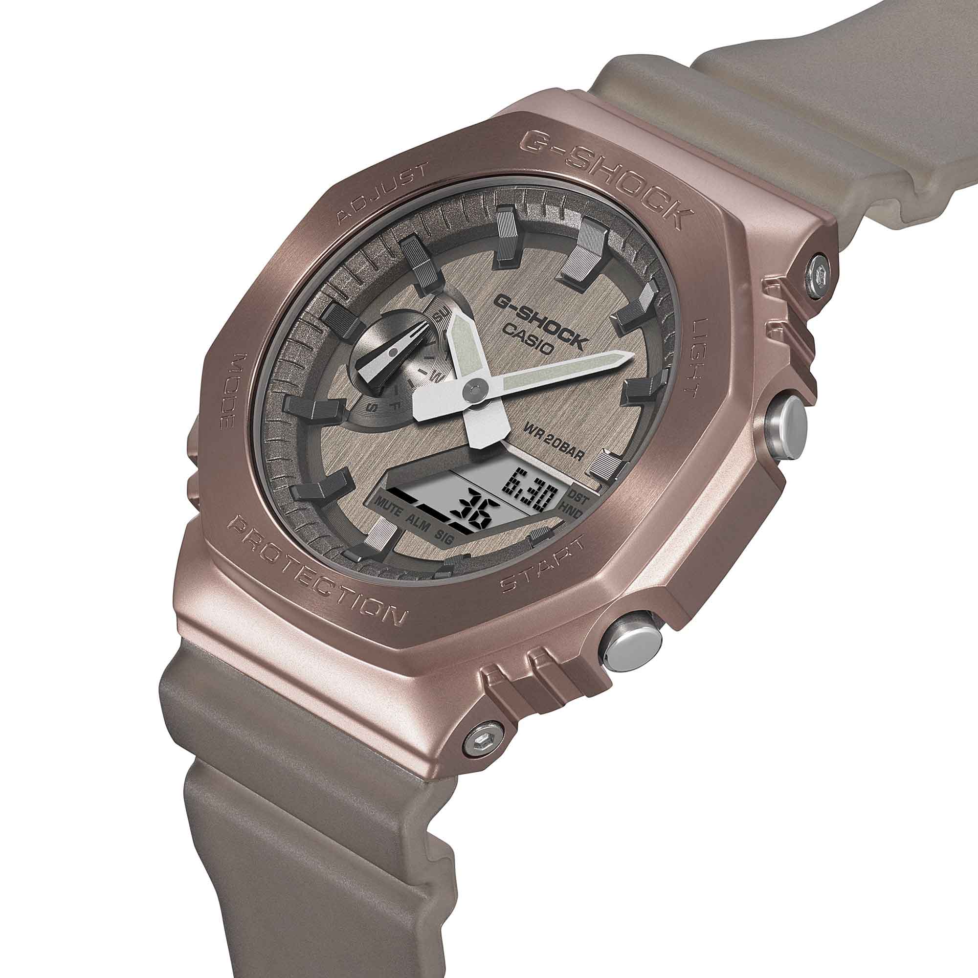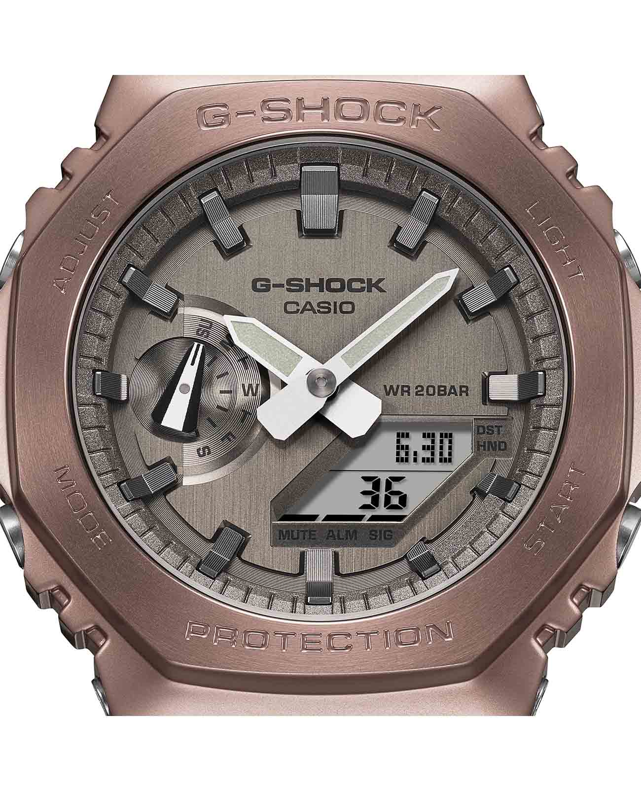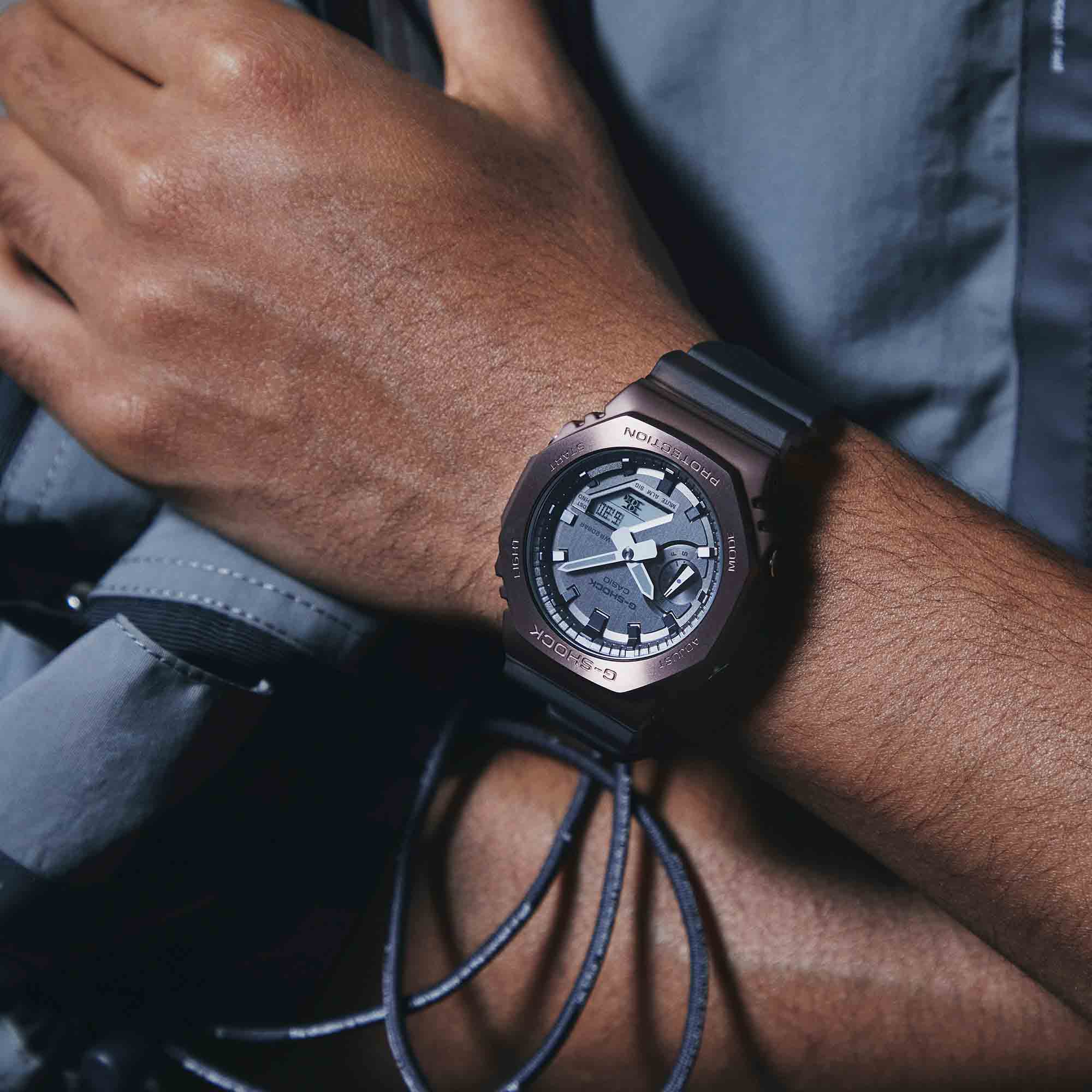 Японские лимитированные мужские часы с хронографомХронографФункция позволяет измерять отрезки времени с особой точностью: часы, минуты, секунды. Верным признаком хронографа является наличие на циферблате 3 дополнительных окошек-счётчиков. Casio G-Shock GM-2100MF-5A, кварцевый механизм с высокой точностью. Класс водозащиты: 200 метров, позволит плавать, нырять и заниматься другими водными видами спорта. Корпус часов изготовлен из стали с IP-покрытиемIP-покрытиеМетод ионного напыления. Демонстрирует повышенную устойчивость к истиранию, окислению и химическим веществам. Под воздействием высокого давления и температуры около 1500°C молекулы металла надёжно соединяются с частицами корпуса часов.. Ударопрочный корпусУдаропрочный корпусМеханизм заключён в корпус, выполненный из современных материалов, устойчивых к ударам, механическим повреждениям и падению с высоты: инновационный пластик, карбон, нержавеющая сталь, титан. защищает механизм от ударов и вибрации. Функция парный иллюминатор обеспечивает подсветку не только аналогового циферблата, но и цифрового дисплея. Подсветка NeobriteПодсветка NeobriteИспользование светонакопительных составов на основе сульфида цинка или алюмината стронция, яркий свет можно наблюдать на протяжении 6-10 часов после «зарядки» часов около источника света. обеспечивает длительное послесвечение в темноте даже после кратковременного нахождения на свету. СекундомерСекундомерСекундоме́р — прибор, способный измерять интервалы времени с точностью до долей секунды. с двумя точностями показаний: 1/100с и 1с и временем измерения 24ч. Сплит-хронографСплит-хронографИспользуется для измерения продолжительности нескольких временных отрезков, начинающихся одновременно, а заканчивающихся в разное время.. Таймер обратного отсчета от 1с до 24ч. Мировое времяМировое время Полезное часовое усложнение, отображающее время в основных городах и известных областях по всему миру, оно связано с часовыми поясами, удобно для путешественников и бизнесменов. – 48 городов (31 часовой пояс), всемирное координированное время (UTCUTCВсемирное кординационное время, не имеющее привязки к географическому положению Гринвича, основывается на атомном отсчёте времени. Регулировка времени осуществляется более точно, чем устаревшее GMT.