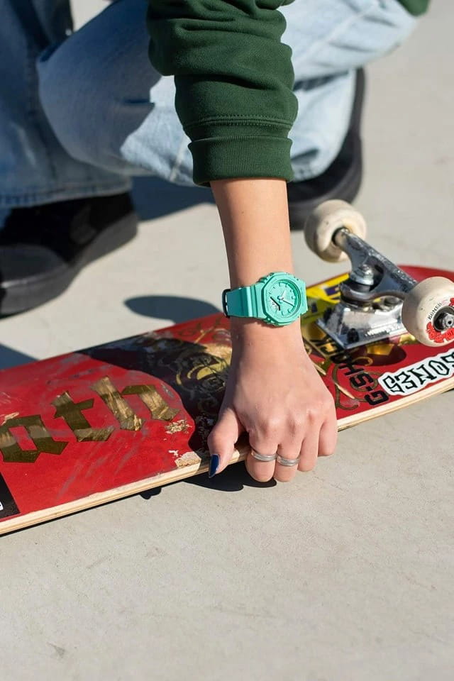 Женские кварцевые часы Casio G-Shock Casio G-Shock GMA-P2100-2A. Корпус часов изготовлен из пластика. Стрелки с люминесцентным покрытиемЛюминесцентное покрытиеПозволяет считывать показания времени в темноте. Производители наносят на стрелки, часовые индексы, безель или поверхность циферблата светонакопительный состав, дающий холодное свечение.. Водозащита: 200 метров, позволит плавать, нырять и заниматься другими водными видами спорта. Минеральное стеклоМинеральное стеклоМинеральное стекло представляет собой искусственно выращенный минерал кварца. Такое стекло отличается особой устойчивостью к повреждениям и царапинам. Уступает по некоторым качествам сапфировому стеклу. устойчивое к появлению царапин, обладающее высокой прозрачностью. Необритовое светонакопительное покрытие обеспечивает длительное послесвечение в темноте даже после кратковременного нахождения на свету. 12-ти и 24-х часовой формат времени. СекундомерСекундомерСекундоме́р — прибор, способный измерять интервалы времени с точностью до долей секунды. с двумя точностями показаний: 1/100с (до 1ч) и 1с (после 1ч) и временем измерения 24ч. Сплит-хронографСплит-хронографИспользуется для измерения продолжительности нескольких временных отрезков, начинающихся одновременно, а заканчивающихся в разное время.. ТаймерТаймерОтсчитывает секунды в обратном направлении в заданном интервале времени. обратного отсчета от 1с до 24ч. Мировое время – 48 городов (31 часовой пояс), всемирное координированное время (UTC). Пластиковый ремешок с классической застежкой.