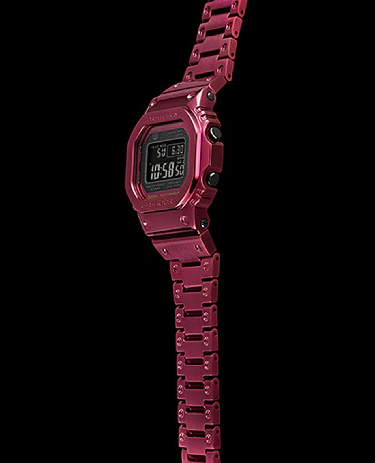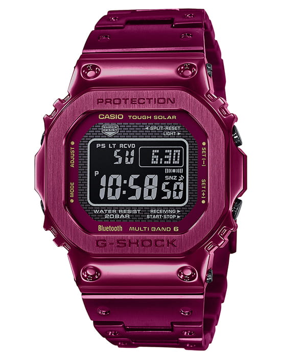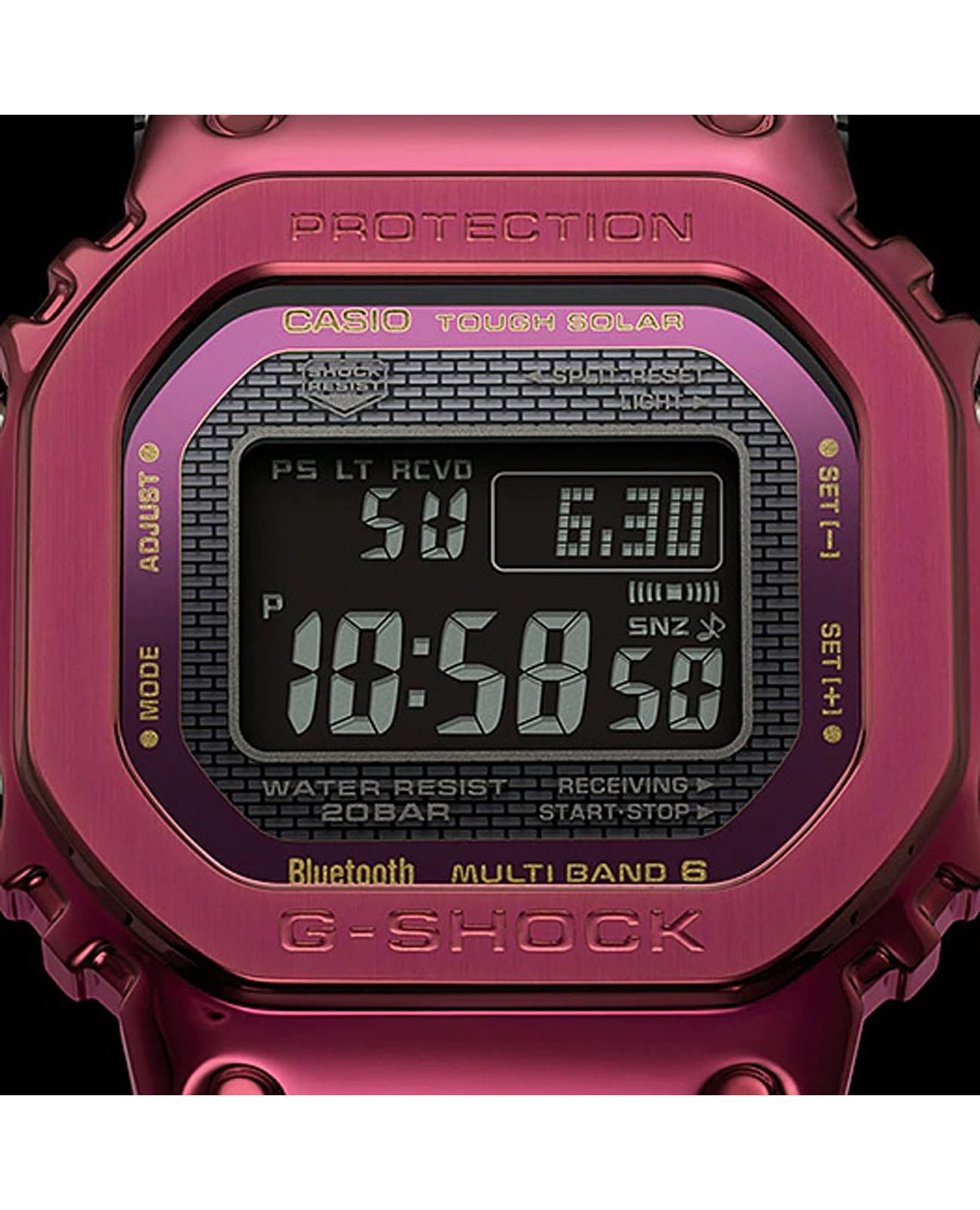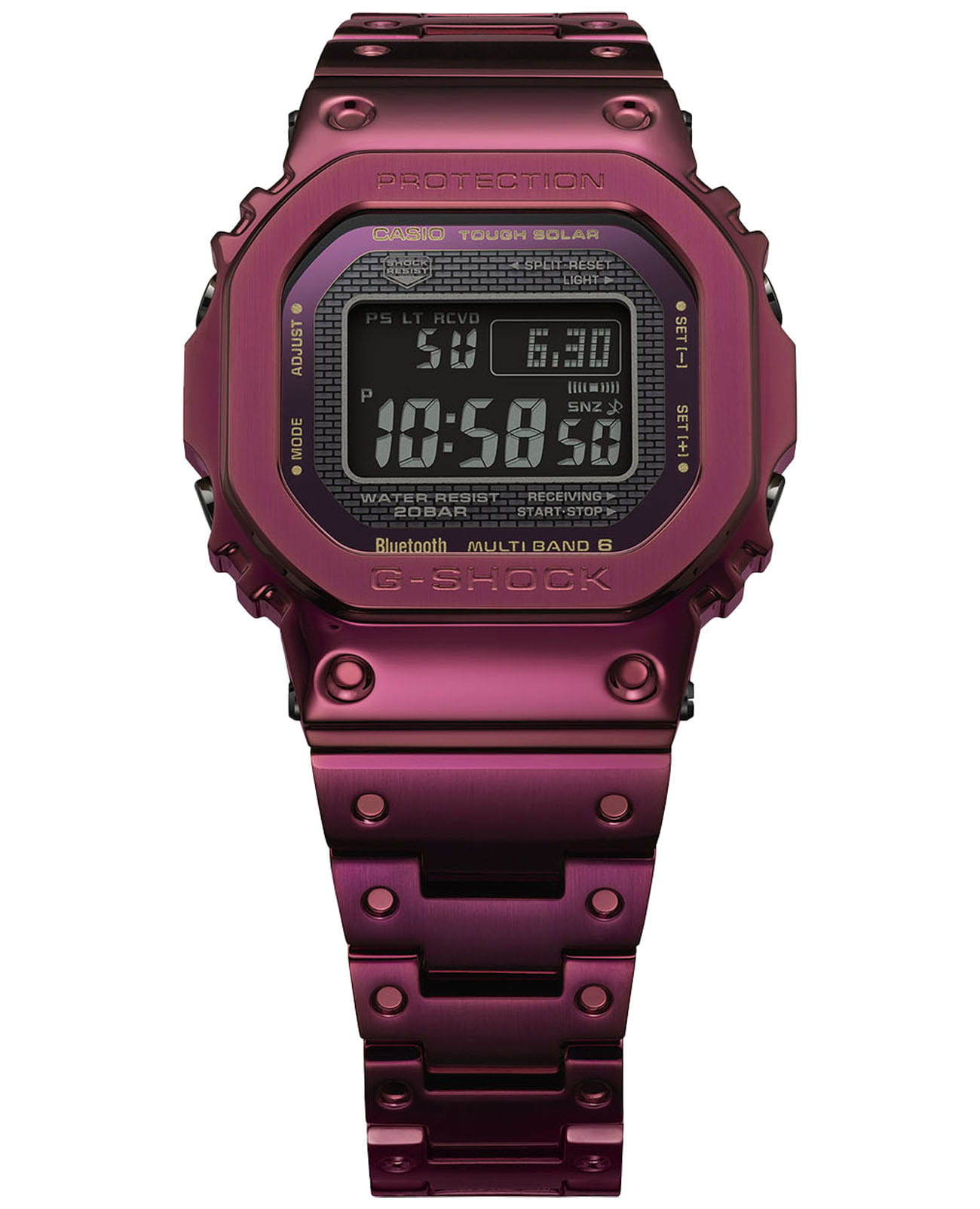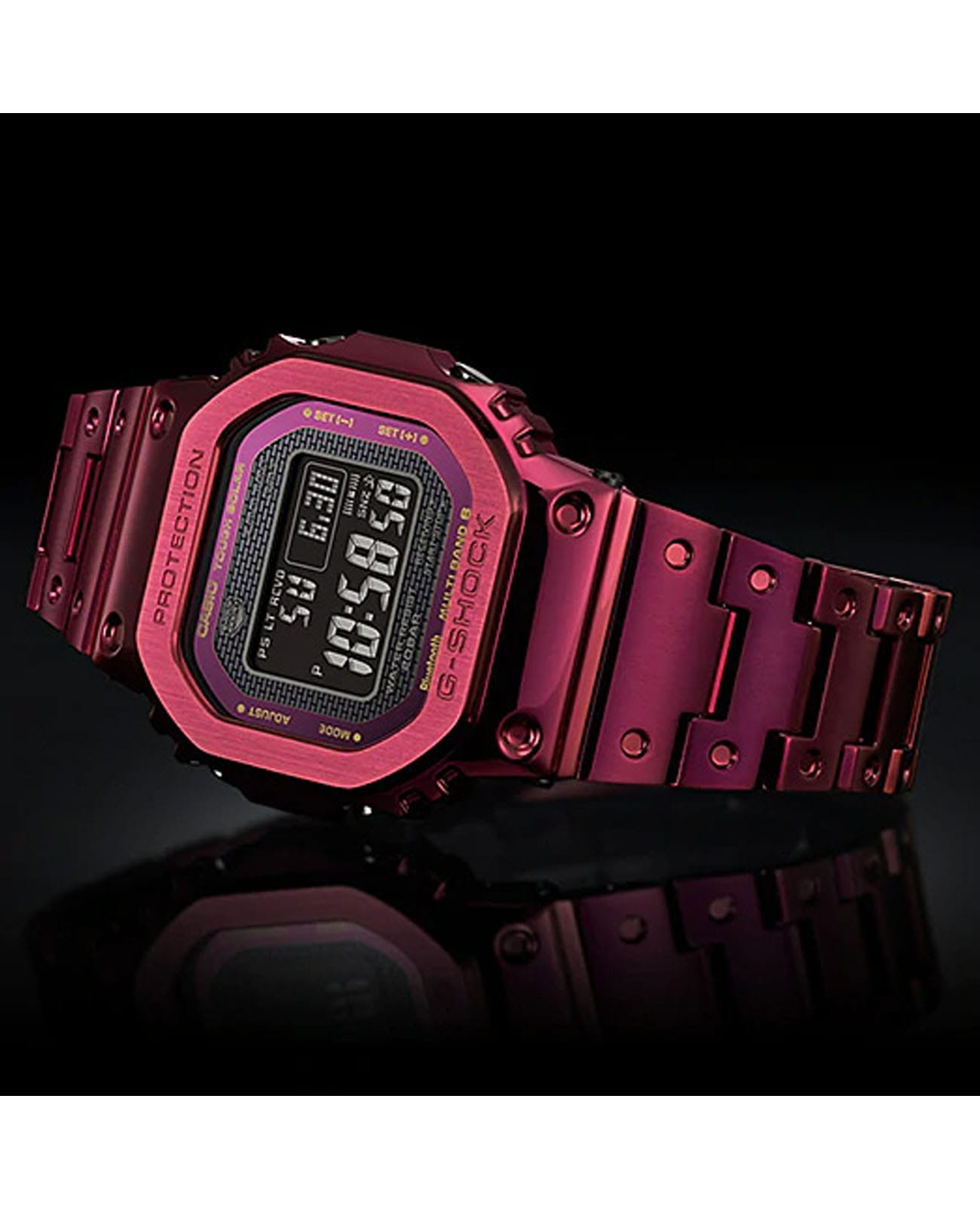 Японские мужские часы GMW-B5000RD-4ER из коллекции G-Shock с легендарным 8-угольным корпусом являются идеальным вариантом в любой ситуации. Премиальные наручные часы бордовой расцветки, напоминающие ретро-модели от Casio, имеют противоударный корпус , благодаря безупречной полировке он выглядит хромированным. Безель имеет естественную стальную структуру. Слой материала Alpha Gel® обеспечивает дополнительную устойчивость к ударам и повреждениям, завинчивающаяся задняя крышка имеет защитное DLC-покрытие . Модель оснащена богатым функционалом: Bluetooth , таймер, функция поиска телефона, UTC , будильник, мировое время , секундомер, хронограф , календарь с индикацией текущей даты и месяца. Минеральное стекло устойчиво к возникновению царапин. Водостойкость при давлении 20 бар. Технология Touch Solar . Яркая светодиодная подсветка . Стальной браслет с безопасной застёжкой. Габариты: 43.2x49.3x13 мм.