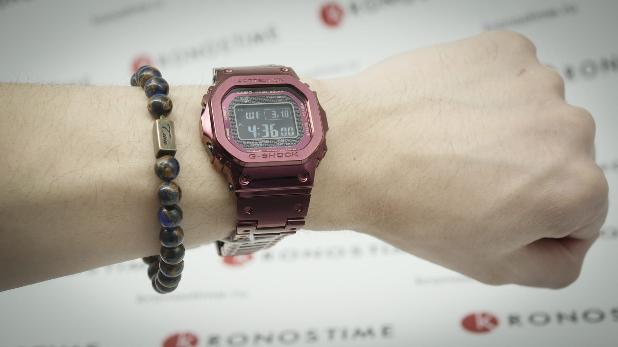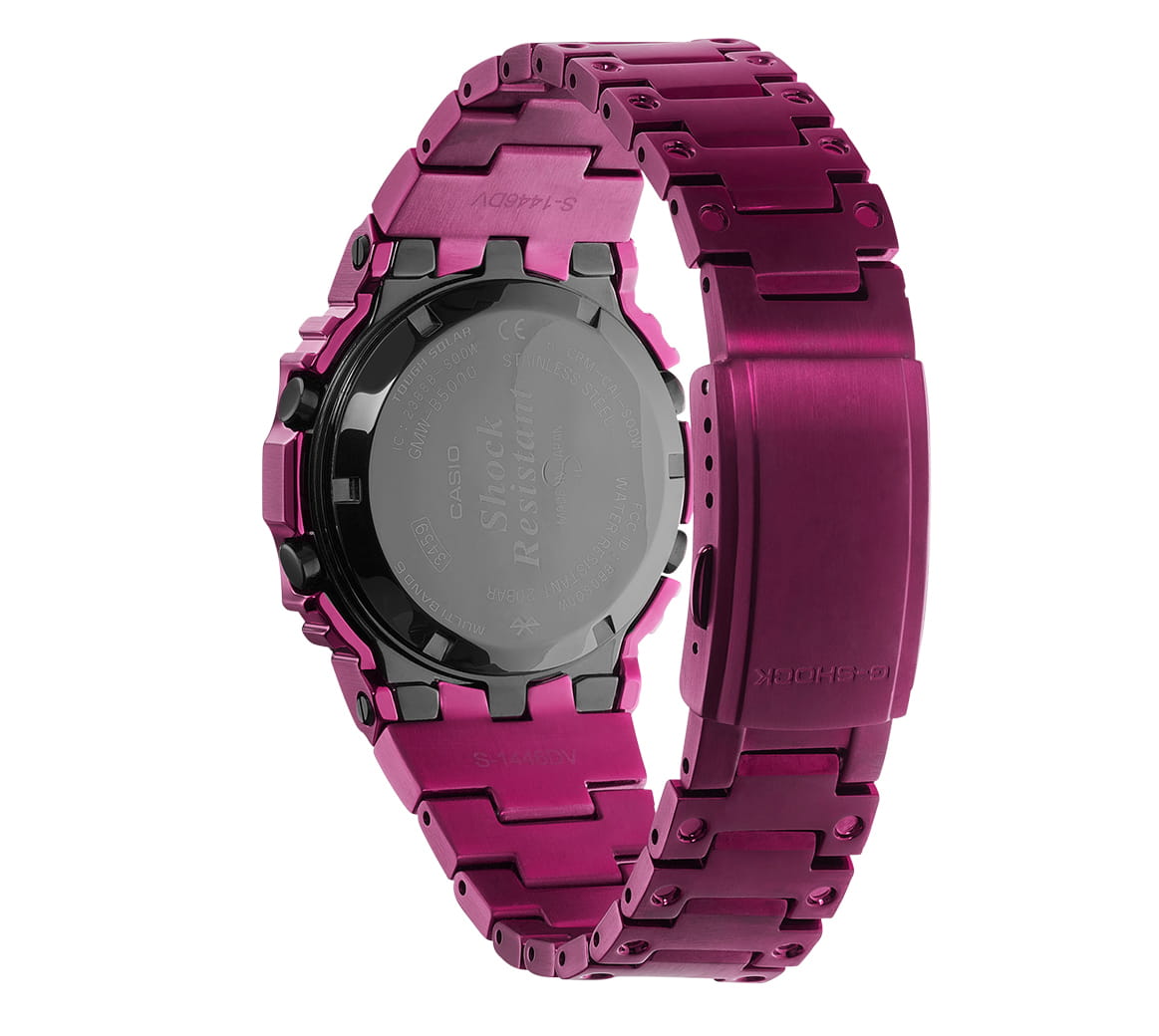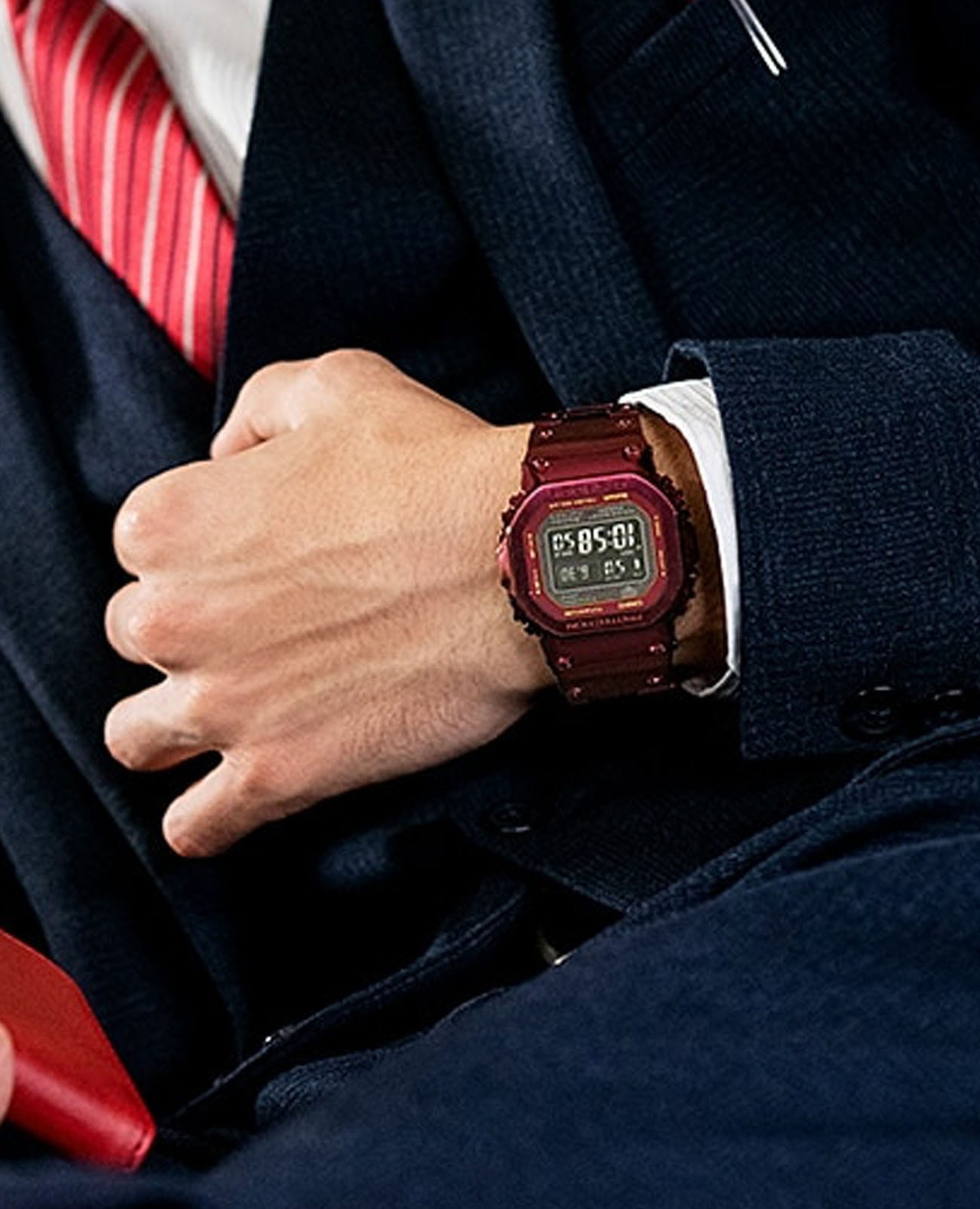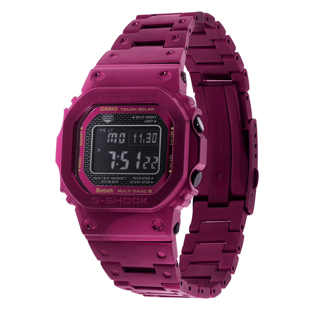 Японские мужские часы GMW-B5000RD-4ER из коллекции G-Shock с легендарным 8-угольным корпусом являются идеальным вариантом в любой ситуации. Премиальные наручные часы бордовой расцветки, напоминающие ретро-модели от Casio, имеют противоударный корпус , благодаря безупречной полировке он выглядит хромированным. Безель имеет естественную стальную структуру. Слой материала Alpha Gel® обеспечивает дополнительную устойчивость к ударам и повреждениям, завинчивающаяся задняя крышка имеет защитное DLC-покрытие . Модель оснащена богатым функционалом: Bluetooth , таймер, функция поиска телефона, UTC , будильник, мировое время , секундомер, хронограф , календарь с индикацией текущей даты и месяца. Минеральное стекло устойчиво к возникновению царапин. Водостойкость при давлении 20 бар. Технология Touch Solar . Яркая светодиодная подсветка . Стальной браслет с безопасной застёжкой. Габариты: 43.2x49.3x13 мм.
