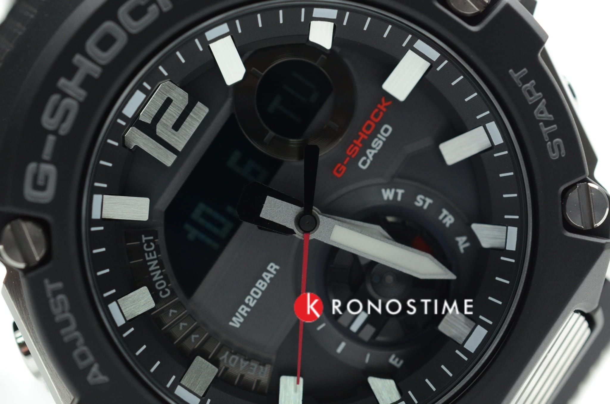 Корпус имеет структуру Carbon Core GuardCarbon Core Guard Новейшая структура корпуса, разработанная Casio. Полиуретановая пластина дополнительно усилена карбоновыми вставками, что придаёт специальную защиту от механических повреждений. Карбон отличается лёгкостью и прочностью., что говорит о повышенной ударопрочности. БезельБезельВнешний ободок, закрепляющий стекло. В спортивных часах так называется поворотное кольцо с делениями на циферблате, выполняет роль таймера – замеряет отрезки времени на шкале. Неподвижный безель – элемент декора. Однонаправленно вращающийся безель на дайверских часах позволяет фиксировать моменты погружения и выныривания на поверхность. изготовлен из стали 316L. Японский кварцевый механизм отличается высокой точностью хода 15 +/- секунд в месяц. Часы оснащены инновационной технологией , синхронизация со смартфоном происходит с помощью BluetoothBluetoothСовременная технология, позволяющая синхронизировать часы с телефоном и переносить данные. Часы с Bluetooth расширяют возможности вашего смартфона и делают его использование ещё более удобным.. Возможности: двойная автоматическая подсветка, мировое времяМировое время Полезное часовое усложнение, отображающее время в основных городах и известных областях по всему миру, оно связано с часовыми поясами, удобно для путешественников и бизнесменов. , будильник, хронографХронографФункция позволяет измерять отрезки времени с особой точностью: часы, минуты, секунды. Верным признаком хронографа является наличие на циферблате 3 дополнительных окошек-счётчиков., календарь, таймер.