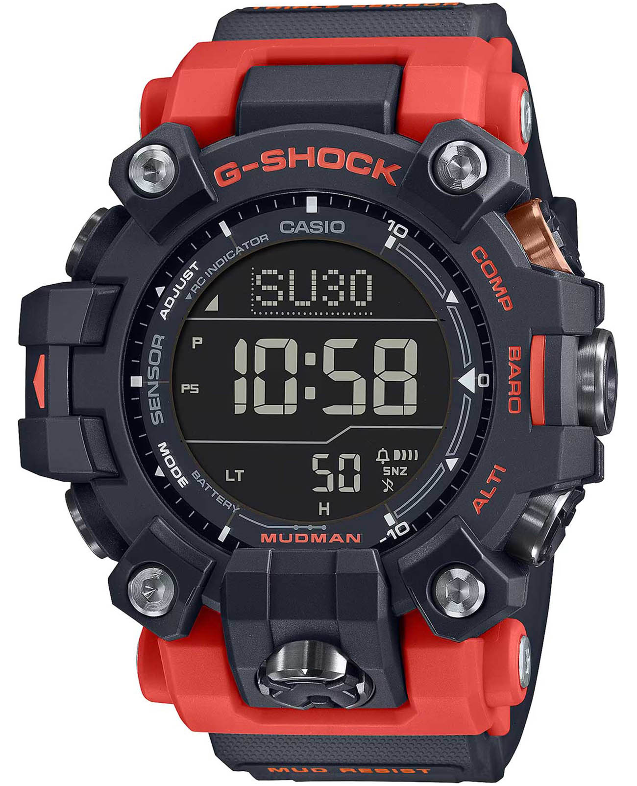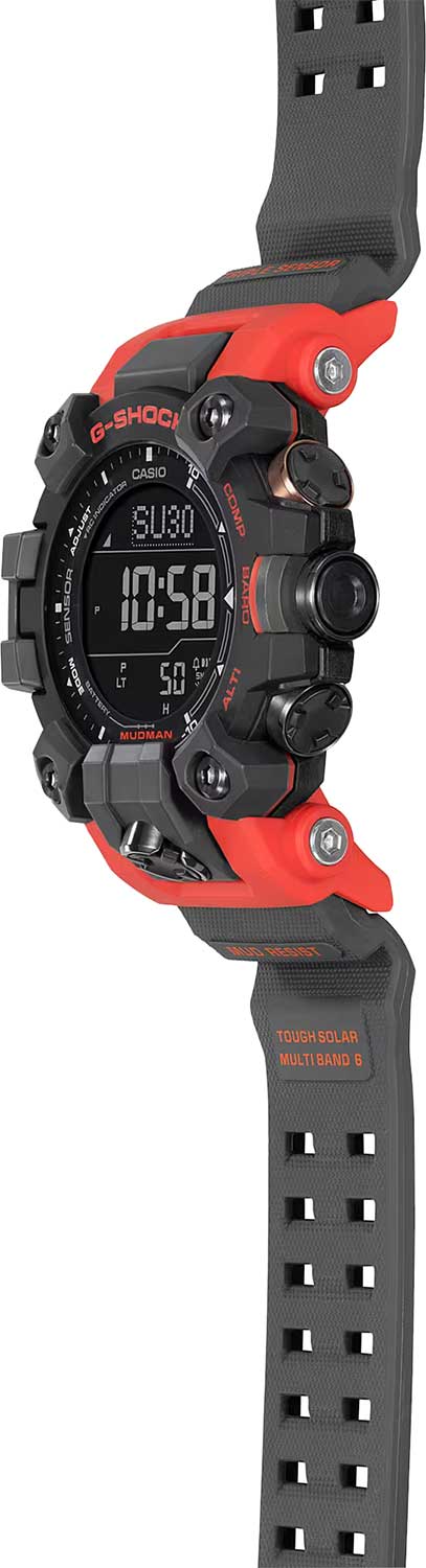 Линейка часов Master of G создана для настоящих мужчин, для которых экстрим и приключения это не просто слова. Мужские японские часы-хронографХронографФункция позволяет измерять отрезки времени с особой точностью: часы, минуты, секунды. Верным признаком хронографа является наличие на циферблате 3 дополнительных окошек-счётчиков. с секундомеромСекундомерСекундоме́р — прибор, способный измерять интервалы времени с точностью до долей секунды. Casio G-Shock GW-9500-1A4, кварцевый механизм с высокой точностью. Класс водозащиты: 200 метров, позволит плавать, нырять и заниматься другими водными видами спорта. Корпус часов изготовлен из пластика. Часы Master Of G Mudman спроектированы и разработаны специально для работы в суровых условиях. Корпус и ремешок выполнены из биопластика, который изготавливается из возобновляемых органических ресурсов. Питание от солнечной энергии Tough SolarTough SolarТехнология основана на подзарядке аккумулятора от источника солнечного света, специальная панель улавливает солнечные лучи и преобразует их в энергию для работы часов. Достаточно пары минут нахождения на солнце для функционирования часов в течении суток. - солнечные батарейки большой мощности, индикатор низкого заряда батареи. Функция автоматического сохранения энергии. Время работы аккумулятора без подзарядки до 6 месяцев, при включенной функции сохранения энергии до 26 месяцев. Структура Carbon Core GuardCarbon Core Guard Новейшая структура корпуса, разработанная Casio. Полиуретановая пластина дополнительно усилена карбоновыми вставками, что придаёт специальную защиту от механических повреждений. Карбон отличается лёгкостью и прочностью.. Ударопрочный корпусУдаропрочный корпусМеханизм заключён в корпус, выполненный из современных материалов, устойчивых к ударам, механическим повреждениям и падению с высоты: инновационный пластик, карбон, нержавеющая сталь, титан. с карбоновыми волокнами более прочный и, в то же время, более легкий. Этот же материал защищает внутренний модуль от повреждений и деформаций при ударах. Защита от попадания внутрь пыли и грязи. Модуль часов рассчитан на работу при низких температурах до -10°С/14°F. Циферблат подсвечивается светодиодом. Настраиваемое послесвечение 1,5 или 3сек. Цвет подсветки: белый. 12-ти и 24-х часовой формат времени. Секундомер с точностью показаний 1/10с и временем измерения 1000ч. Сплит-хронографСплит-хронографИспользуется для измерения продолжительности нескольких временных отрезков, начинающихся одновременно, а заканчивающихся в разное время.. ТаймерТаймерОтсчитывает секунды в обратном направлении в заданном интервале времени. обратного отсчета времени от 1мин до 24ч. Мировое времяМировое время Полезное часовое усложнение, отображающее время в основных городах и известных областях по всему миру, оно связано с часовыми поясами, удобно для путешественников и бизнесменов. – 48 городов (31 часовой пояс), всемирное координированное время (UTCUTCВсемирное кординационное время, не имеющее привязки к географическому положению Гринвича, основывается на атомном отсчёте времени. Регулировка времени осуществляется более точно, чем устаревшее GMT.