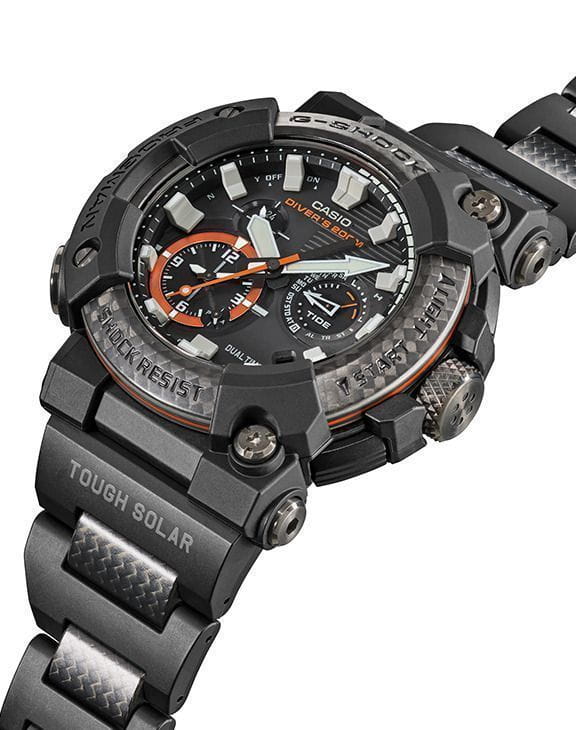Часы Casio G-Shock GWF-A1000XC-1AER - модель из лимитированной серии Frogman для дайверов со стрелочной индикацией времени и ассиметричным дизайном циферблата, который является отличительной чертой линейки часов Frogman с момента ее запуска в 1993 году.