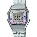 Электронные часы Casio Vintage LA680WA-4C с пластиковым стеклом . Водостойкость 30 метров, позволит защитить корпус от случайных брызг или капель дождя. Циферблат подсвечивается светодиодомСветодиодная подсветкаСветодиодная или LED-подсветка обеспечивает появление яркого холодного свечения за счёт LED-элементов - маленьких лампочек. Они потребляют минимальное количество энергии, чаще всего можно встретить 1 светодиод, в нижней части циферблата.. СекундомерСекундомерСекундоме́р — прибор, способный измерять интервалы времени с точностью до долей секунды. с точностью показаний 1/100с и временем измерения 1ч. Сплит-хронографСплит-хронографИспользуется для измерения продолжительности нескольких временных отрезков, начинающихся одновременно, а заканчивающихся в разное время.. Батарея рассчитана на 5 лет. Водонепроницаемость в соответствии с DIN 8310/ISO 2281. Задняя крышка крепится на 4-х винтах. Браслет с регулируемой застежкой.