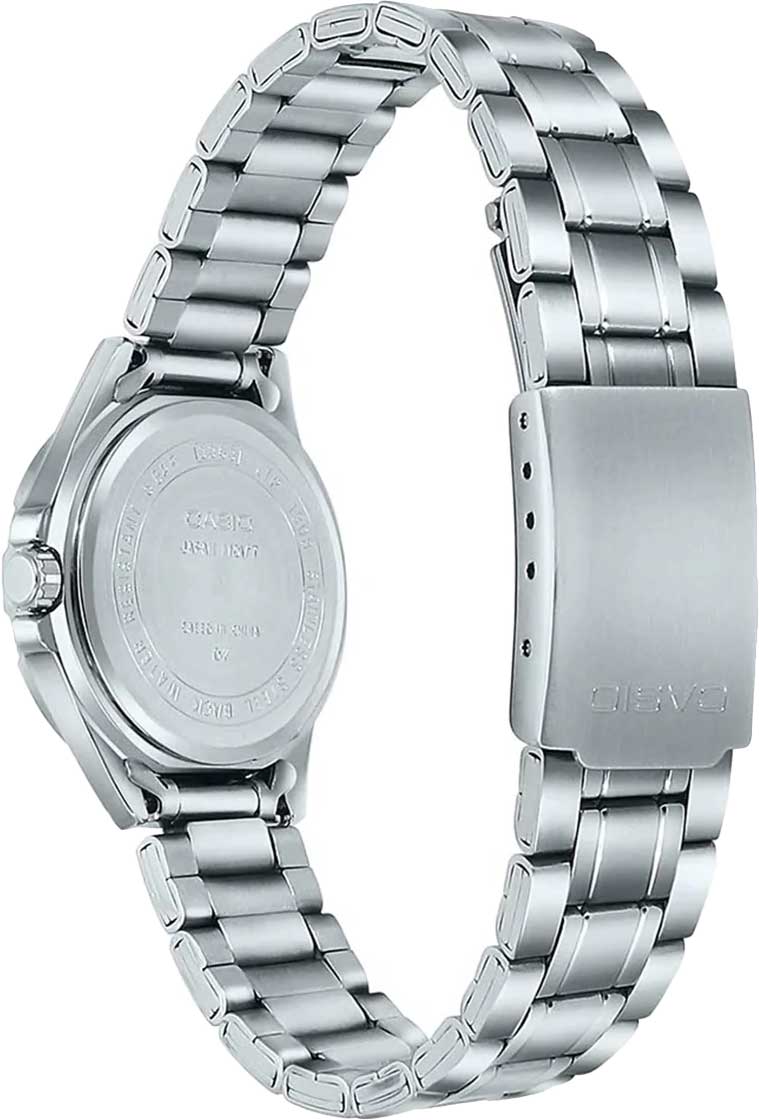 Аккуратные часы в стиле casual станут отличным дополнением к вашему образу. Standard. Женские часы с круглым корпусом. Циферблат с люминесцентным покрытиемЛюминесцентное покрытиеПозволяет считывать показания времени в темноте. Производители наносят на стрелки, часовые индексы, безель или поверхность циферблата светонакопительный состав, дающий холодное свечение. стрелок, дополнен минеральным стекломМинеральное стеклоМинеральное стекло представляет собой искусственно выращенный минерал кварца. Такое стекло отличается особой устойчивостью к повреждениям и царапинам. Уступает по некоторым качествам сапфировому стеклу. , устойчивым к мелким механическим повреждениям. Окошко даты находится в положении 3 часа. Заводная головка с защитой. Батарейка рассчитана на 3 года. Браслет с раскладной застёжкойРаскладная застёжкаТакой тип застёжки используется только на браслетах из металла. Она никогда не раскрывается полностью, происходит разделение на 2 и более частей. Раскладывающая застёжка снизит вероятность потери часов к минимуму.
