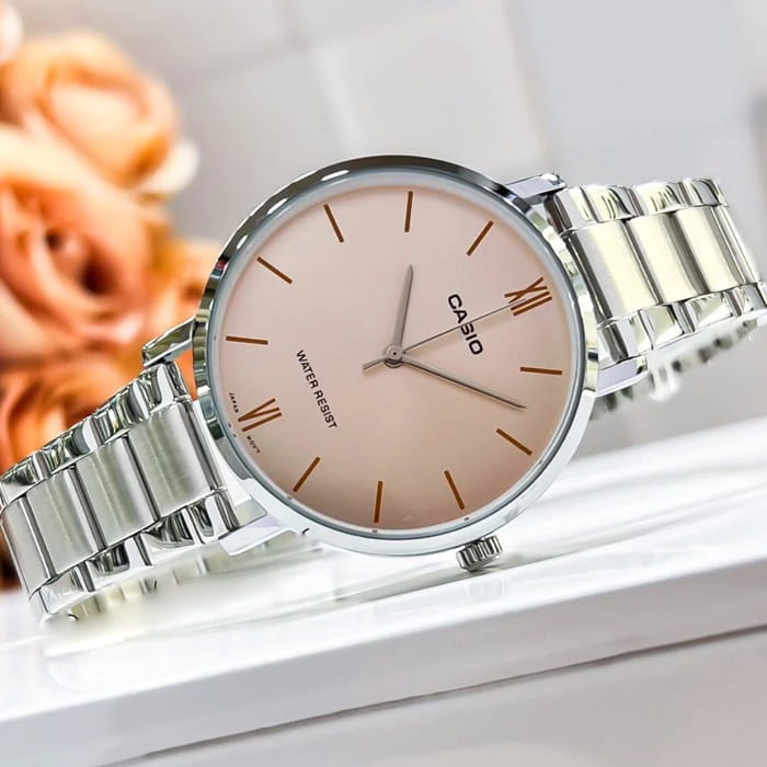 Японские женские часы LTP-VT01D-4B с минеральным стекломМинеральное стеклоМинеральное стекло представляет собой искусственно выращенный минерал кварца. Такое стекло отличается особой устойчивостью к повреждениям и царапинам. Уступает по некоторым качествам сапфировому стеклу. изящно смотрятся на запястье, они привлекают классическим исполнением и правильной геометрией. Минималистичная модель станет отличным решением для любого случая: на работу, переговоры с деловыми партнёрами, прогулку с друзьями или праздничный вечер. Отсутствуют лишние детали, что позволяет часам быть актуальными на долгие годы. Корпус выполнен из нержавеющей стали. Модель комплектуется надёжным механизмом, точность хода которого составляет +/- 20 сек/мес. Стальной браслет на раскладной застёжкеРаскладная застёжкаТакой тип застёжки используется только на браслетах из металла. Она никогда не раскрывается полностью, происходит разделение на 2 и более частей. Раскладывающая застёжка снизит вероятность потери часов к минимуму.. Класс водозащиты: 30 метров, позволит защитить корпус от случайных брызг или капель дождя.