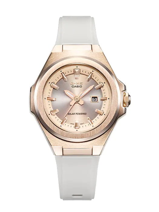 Японские женские часы с минеральным стекломМинеральное стеклоМинеральное стекло представляет собой искусственно выращенный минерал кварца. Такое стекло отличается особой устойчивостью к повреждениям и царапинам. Уступает по некоторым качествам сапфировому стеклу. Casio Baby-G MSG-S500G-7A2, кварцевый механизм с высокой точностью. Аккуратная модель часов станет элегантным дополнением любого вашего образа. G-MS. Ударопрочный корпусУдаропрочный корпусМеханизм заключён в корпус, выполненный из современных материалов, устойчивых к ударам, механическим повреждениям и падению с высоты: инновационный пластик, карбон, нержавеющая сталь, титан. из стали с IP-покрытиемIP-покрытиеМетод ионного напыления. Демонстрирует повышенную устойчивость к истиранию, окислению и химическим веществам. Под воздействием высокого давления и температуры около 1500°C молекулы металла надёжно соединяются с частицами корпуса часов. и полимерного материала защищает механизм от ударов и вибрации. Циферблат выполнен по технологии Sunray (солнечные лучи). Подсветка NeobriteПодсветка NeobriteИспользование светонакопительных составов на основе сульфида цинка или алюмината стронция, яркий свет можно наблюдать на протяжении 6-10 часов после «зарядки» часов около источника света. обеспечивает длительное послесвечение в темноте даже после кратковременного нахождения на свету. Окошко даты в положении 3 часов. Питание от солнечной энергии, индикатор заряда батареи. Время работы аккумулятора без подзарядки - 5 месяцев. Класс водозащиты: 100 метров, позволит плавать, нырять и заниматься другими водными видами спорта. Ремешок из полимерного материала на стандартной застежке.