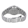 Японские мужские кварцевые часы с минеральным стекломМинеральное стеклоМинеральное стекло представляет собой искусственно выращенный минерал кварца. Такое стекло отличается особой устойчивостью к повреждениям и царапинам. Уступает по некоторым качествам сапфировому стеклу. Casio Collection MTP-RS100D-5A, кварцевый механизм с высокой точностью. Корпус часов изготовлен из нержавеющей стали. Питание от солнечной энергии. Время работы - 4 месяца. Циферблат с метками в виде штрихов выполнен по технологии Sunray (солнечные лучи). Циферблат с метками в виде штрихов. Стрелки и метки с люминесцентным покрытиемЛюминесцентное покрытиеПозволяет считывать показания времени в темноте. Производители наносят на стрелки, часовые индексы, безель или поверхность циферблата светонакопительный состав, дающий холодное свечение.. Заводная головка с защитой. Класс водозащиты: 50 метров, позволит защитить корпус от случайных брызг или капель дождя. Стальной браслет на раскладной застёжкеРаскладная застёжкаТакой тип застёжки используется только на браслетах из металла. Она никогда не раскрывается полностью, происходит разделение на 2 и более частей. Раскладывающая застёжка снизит вероятность потери часов к минимуму..