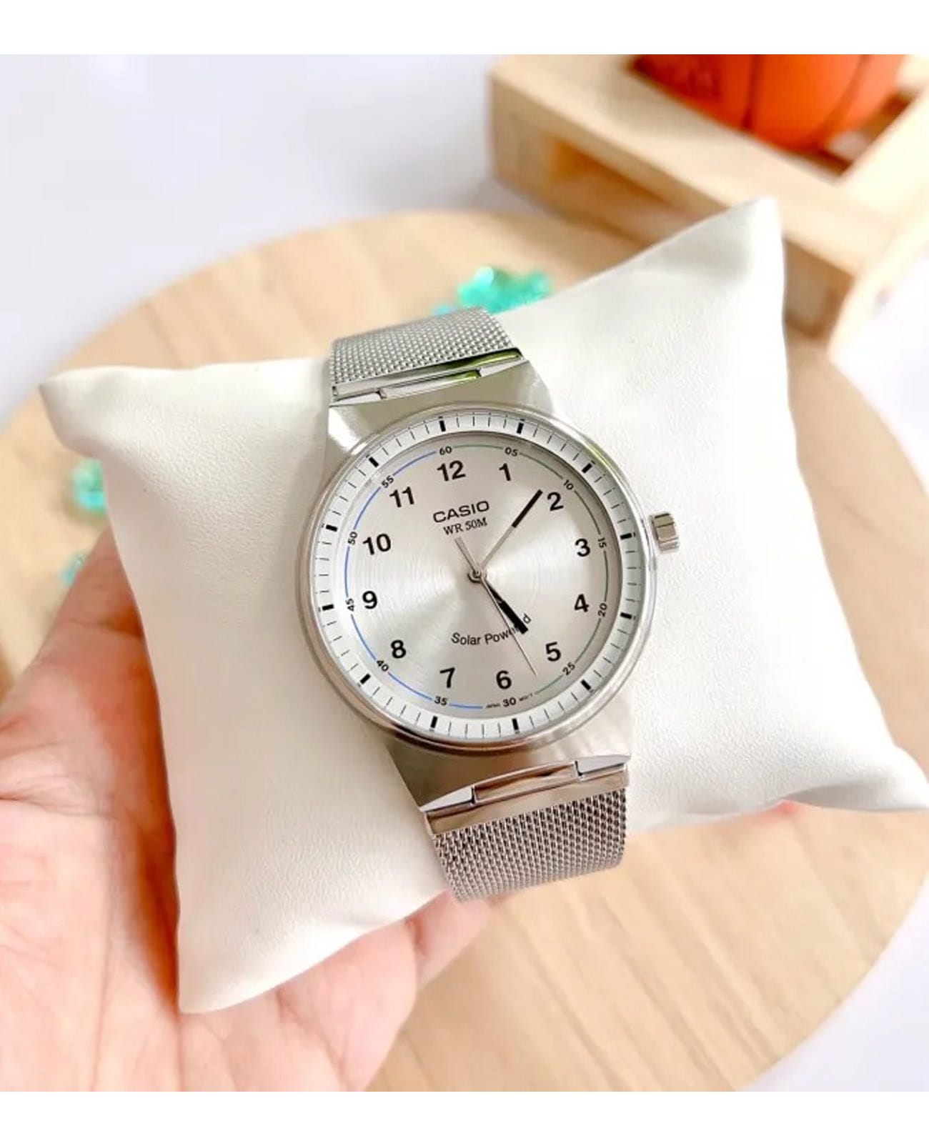 Японские мужские кварцевые часы с минеральным стекломМинеральное стеклоМинеральное стекло представляет собой искусственно выращенный минерал кварца. Такое стекло отличается особой устойчивостью к повреждениям и царапинам. Уступает по некоторым качествам сапфировому стеклу. Casio Collection MTP-RS105M-7B, кварцевый механизм с высокой точностью. Корпус часов изготовлен из нержавеющей стали. Питание от солнечной энергии. Время работы - 4 месяца. Циферблат с метками в виде штрихов выполнен по технологии Sunray (солнечные лучи). Циферблат с метками в виде штрихов. Класс водозащиты: 50 метров, позволит защитить корпус от случайных брызг или капель дождя. Стальной браслет миланского плетения на раскладном замкеРаскладной замокДанный вариант застежки используется только на часах с металлическим браслетом. Отличительная особенность такого крепления в том, что длина браслета становится универсальной и вы можете самостоятельно отрегулировать нужный вам размер – застежка просто двигается по браслету часов..