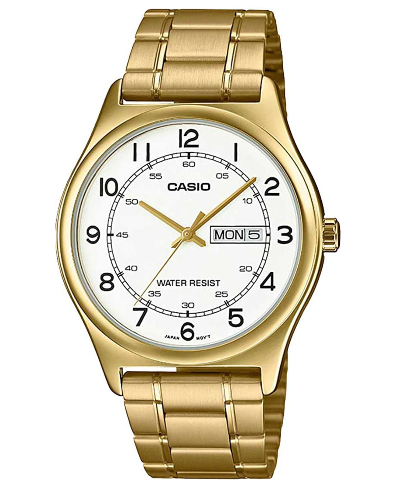 Японские мужские кварцевые часы с минеральным стекломМинеральное стеклоМинеральное стекло представляет собой искусственно выращенный минерал кварца. Такое стекло отличается особой устойчивостью к повреждениям и царапинам. Уступает по некоторым качествам сапфировому стеклу. Casio Collection Standard MTP-V006G-7B, кварцевый механизм с высокой точностью. Корпус и браслет часов изготовлен из нержавеющей стали с IP-покрытиемIP-покрытиеМетод ионного напыления. Демонстрирует повышенную устойчивость к истиранию, окислению и химическим веществам. Под воздействием высокого давления и температуры около 1500°C молекулы металла надёжно соединяются с частицами корпуса часов.. Окошко даты находится в положении 3 часа. Класс водозащиты: 30 метров, позволит защитить корпус от случайных брызг или капель дождя. Стальной браслет на раскладной застёжкеРаскладная застёжкаТакой тип застёжки используется только на браслетах из металла. Она никогда не раскрывается полностью, происходит разделение на 2 и более частей. Раскладывающая застёжка снизит вероятность потери часов к минимуму..