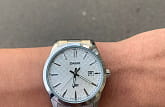 Аксессуар в строгом серебристом исполнении никогда не утратит актуальности, он будет прекрасным дополнением к классическому костюму, спортивной футболке, модных джинсах. Компактный циферблат выполнен в стиле шахматной доски. Стрелки с люминесцентным покрытиемЛюминесцентное покрытиеПозволяет считывать показания времени в темноте. Производители наносят на стрелки, часовые индексы, безель или поверхность циферблата светонакопительный состав, дающий холодное свечение.. Браслет и корпус наручных часов сделаны из нержавеющей стали, обладающей противокоррозионными свойствами. Высокоточный кварцевый механизм. Минеральное стеклоМинеральное стеклоМинеральное стекло представляет собой искусственно выращенный минерал кварца. Такое стекло отличается особой устойчивостью к повреждениям и царапинам. Уступает по некоторым качествам сапфировому стеклу.. Апертура даты на отметке 3 часа.