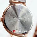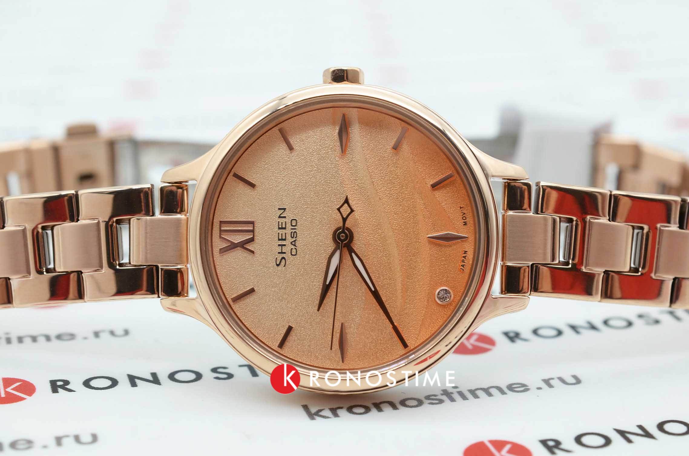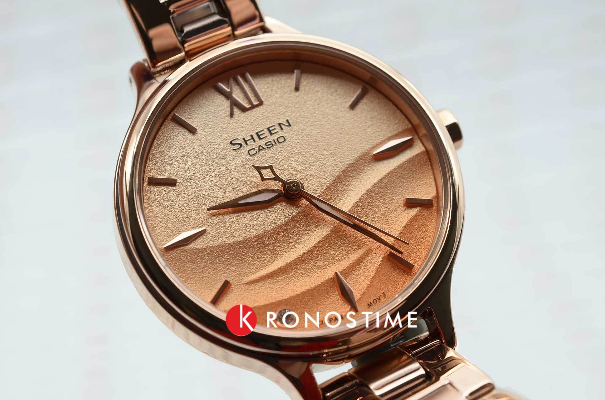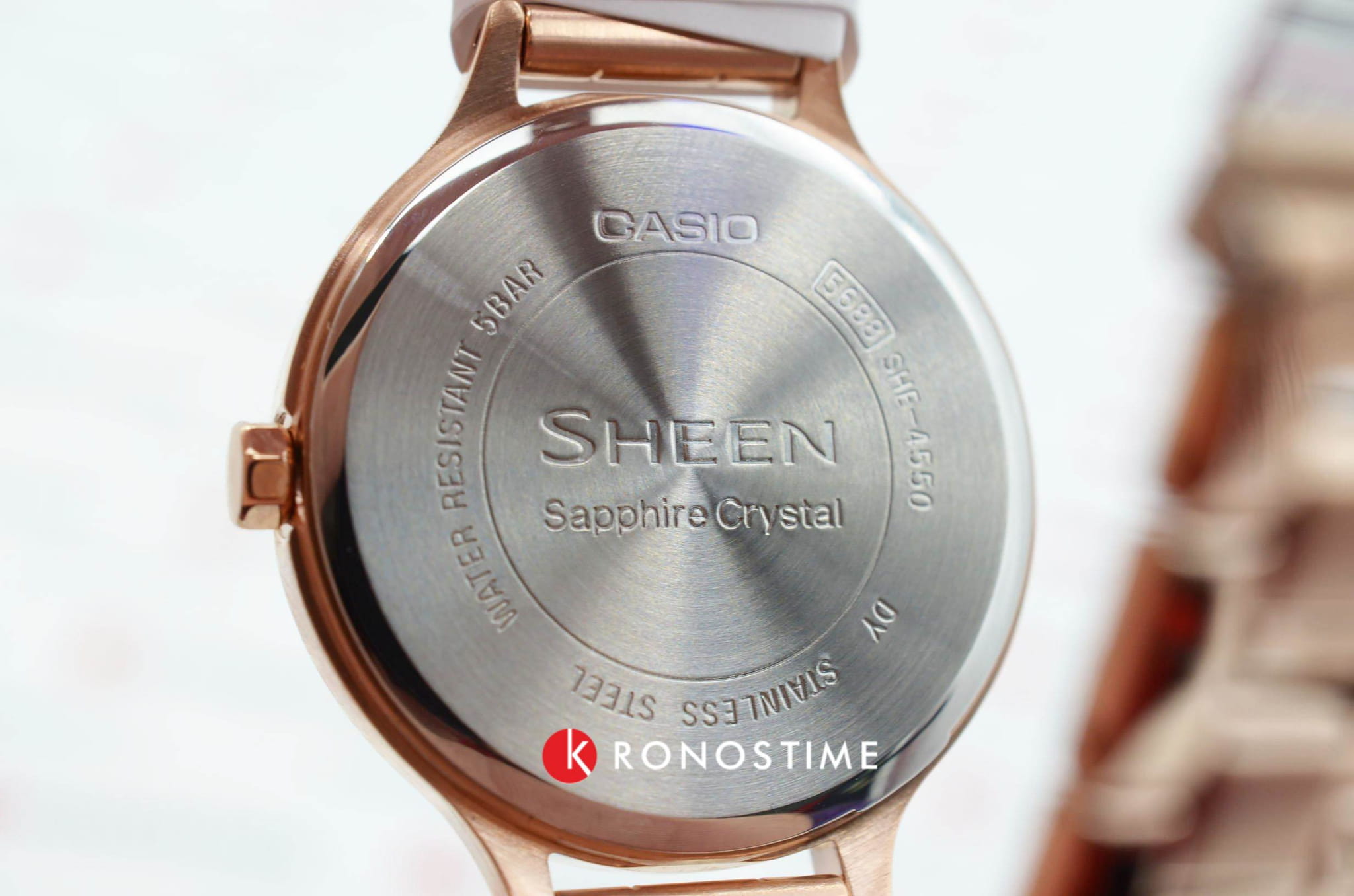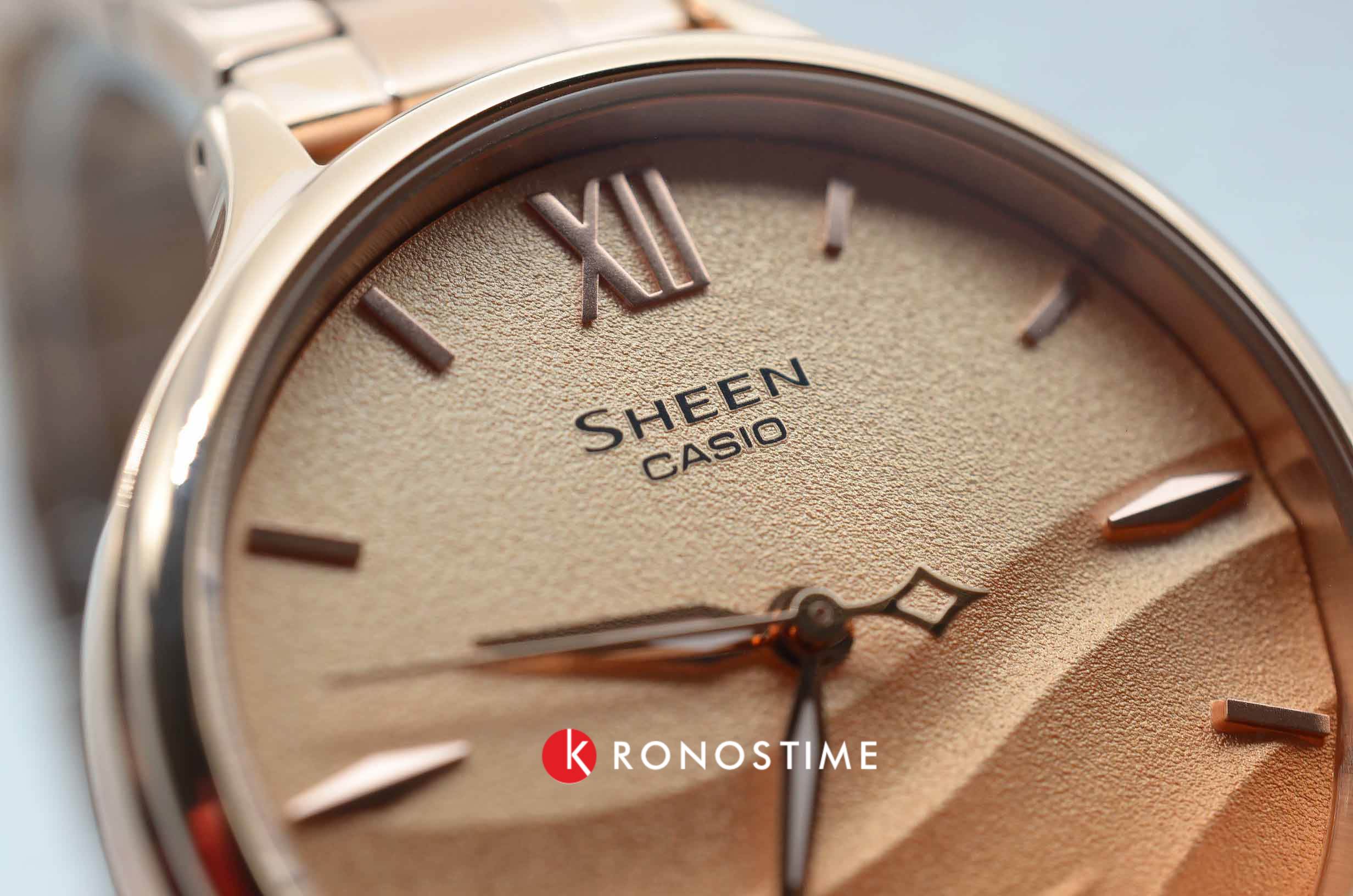 Японские женские часы с сапфировым стекломСапфировое стеклоПрочный и надёжный материал из кристалла сапфира синтетического происхождения, характеризующийся особой твёрдостью и устойчивостью к царапинам и повреждениям. Casio Sheen SHE-4550PG-4A, кварцевый механизм с высокой точностью. Яркий и привлекательный стиль этих часов гармонично дополнит ваш нежный образ. Корпус и браслет часов извотолвены из стали с IP-покрытиемIP-покрытиеМетод ионного напыления. Демонстрирует повышенную устойчивость к истиранию, окислению и химическим веществам. Под воздействием высокого давления и температуры около 1500°C молекулы металла надёжно соединяются с частицами корпуса часов.. Циферблат с текстурой морской волны, которая оставила свой след на фоне золотистого песка. У отметки семи часов циферблат дополнительно украшен кристаллом. Стрелки с люминесцентным покрытиемЛюминесцентное покрытиеПозволяет считывать показания времени в темноте. Производители наносят на стрелки, часовые индексы, безель или поверхность циферблата светонакопительный состав, дающий холодное свечение.. Класс водозащиты: 50 метров, позволит защитить корпус от случайных брызг или капель дождя. Браслет на раскладной застёжкеРаскладная застёжкаТакой тип застёжки используется только на браслетах из металла. Она никогда не раскрывается полностью, происходит разделение на 2 и более частей. Раскладывающая застёжка снизит вероятность потери часов к минимуму..