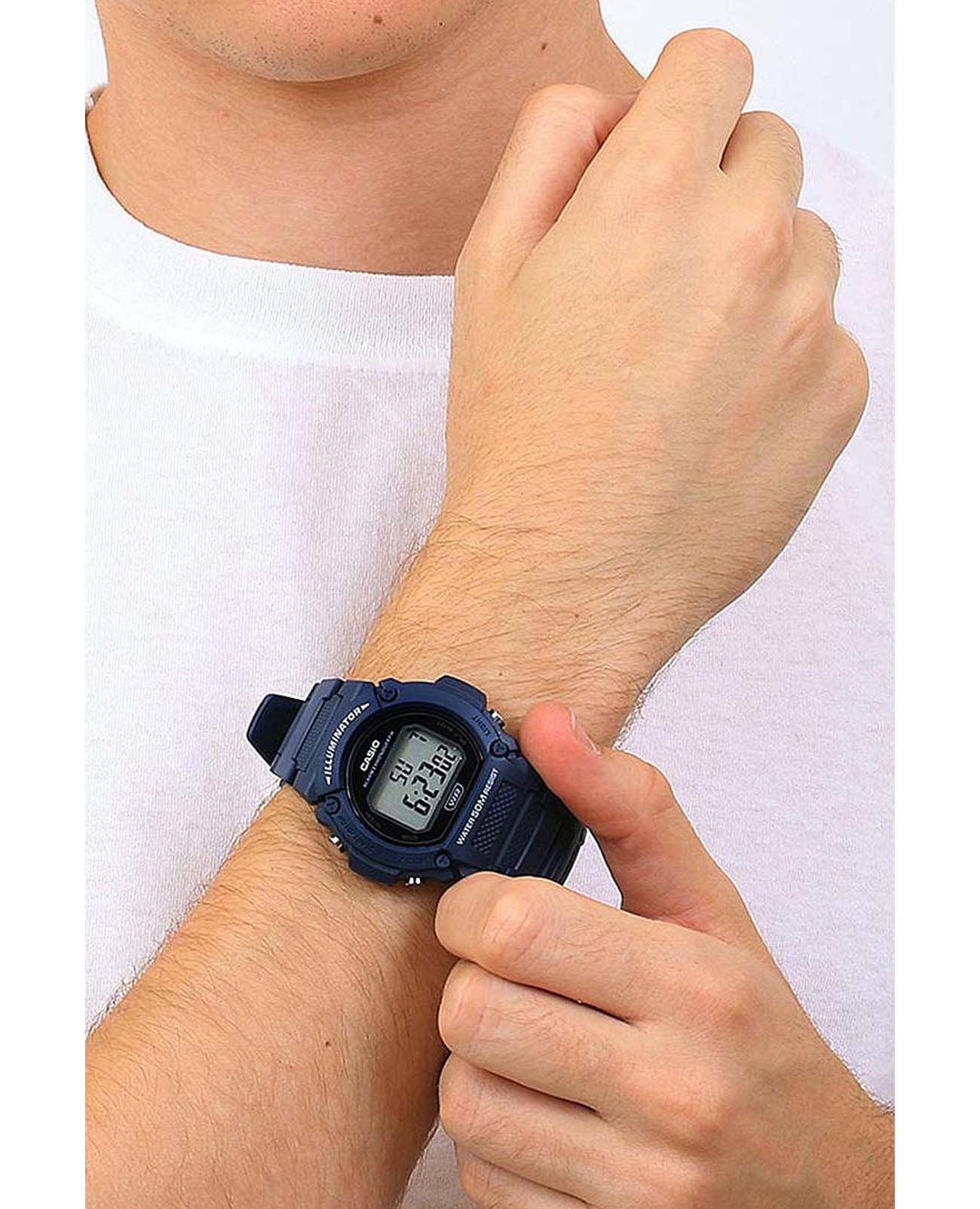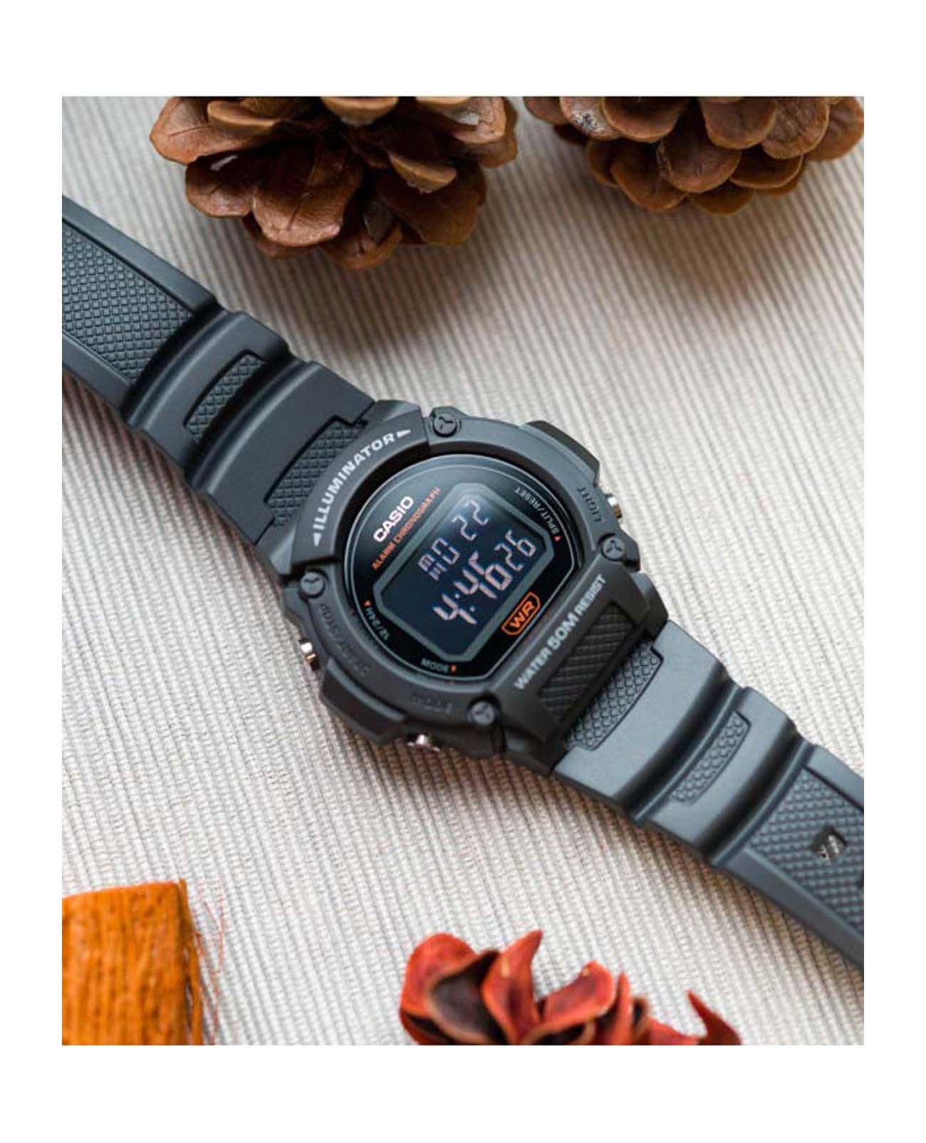 Спортивные японские мужские часы-хронографХронографФункция позволяет измерять отрезки времени с особой точностью: часы, минуты, секунды. Верным признаком хронографа является наличие на циферблате 3 дополнительных окошек-счётчиков. Casio Collection W-219H-8B, кварцевый механизм с высокой точностью, органическое стекло. Корпус часов изготовлен из плачтика. Светодиодная подсветкаСветодиодная подсветкаСветодиодная или LED-подсветка обеспечивает появление яркого холодного свечения за счёт LED-элементов - маленьких лампочек. Они потребляют минимальное количество энергии, чаще всего можно встретить 1 светодиод, в нижней части циферблата. освещает весь циферблат. Цвет подсветки: оранжевый. 12-ти и 24-х часовой формат времени. СекундомерСекундомерСекундоме́р — прибор, способный измерять интервалы времени с точностью до долей секунды. с точностью показаний 1/100с и временем измерения 1ч. Сплит-хронографСплит-хронографИспользуется для измерения продолжительности нескольких временных отрезков, начинающихся одновременно, а заканчивающихся в разное время.. Батарейка рассчитана на 7 лет. Класс водозащиты: 50 метров, позволит защитить корпус от случайных брызг или капель дождя. Ремешок из полимерного материала на стандартной застежке.