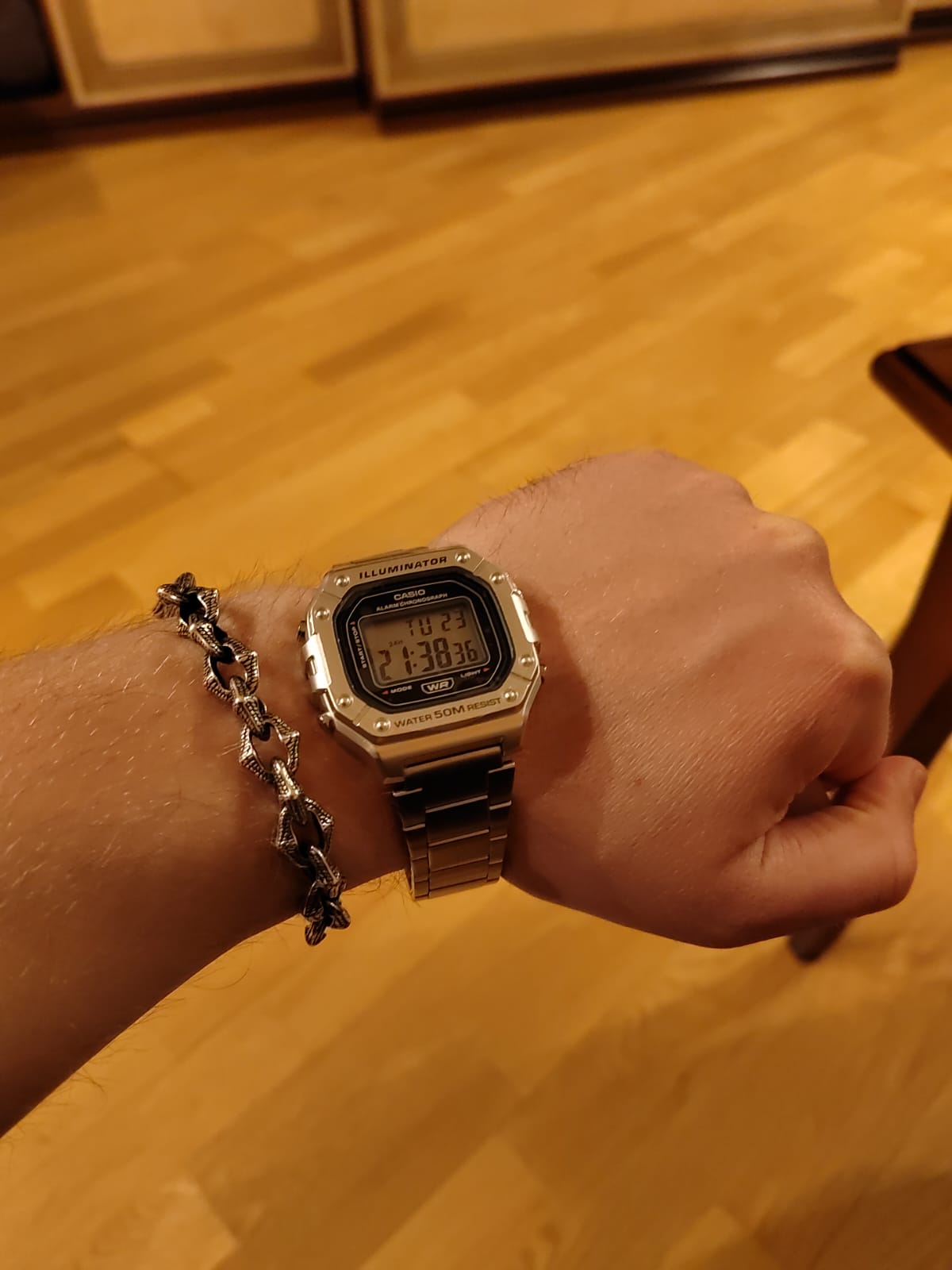 Японские часы с хронографом и светодиодом Casio Collection W-218HD-1AVDF (W-218HD-1A), кварцевый механизм с высокой точностью. Класс водозащиты: 50 метров, позволит защитить корпус от случайных брызг или капель дождя. Корпус часов изготовлен из пластика, серебристого цвета.