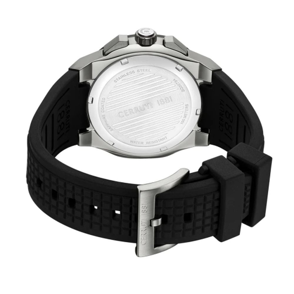 Cerruti 1881 CIWGQ0073401 — стильные мужские часы с выразительным индустриальным дизайном, в которых сочетаются спортивная энергия и итальянская элегантность. Корпус из нержавеющей стали с массивным безелемБезельВнешний ободок, закрепляющий стекло. В спортивных часах так называется поворотное кольцо с делениями на циферблате, выполняет роль таймера – замеряет отрезки времени на шкале. Неподвижный безель – элемент декора. Однонаправленно вращающийся безель на дайверских часах позволяет фиксировать моменты погружения и выныривания на поверхность. с PVD-покрытиемPVDУльтратонкое покрытие наносится в технике вакуумного напыления, сочетает в себе нитрид титана особой прочности со слоем золота или оксида хрома. Несёт в себе декоративную или защитную функцию. и декоративными винтами придаёт модели мощный и мужественный облик. Глубокий циферблат с тремя счётчиками хронографаХронографФункция позволяет измерять отрезки времени с особой точностью: часы, минуты, секунды. Верным признаком хронографа является наличие на циферблате 3 дополнительных окошек-счётчиков. подчёркивает технический характер часов, а контрастные стрелки и метки с люминесцентным покрытиемЛюминесцентное покрытиеПозволяет считывать показания времени в темноте. Производители наносят на стрелки, часовые индексы, безель или поверхность циферблата светонакопительный состав, дающий холодное свечение. обеспечивают отличную читаемость при любом освещении. Прочное минеральное стеклоМинеральное стеклоМинеральное стекло представляет собой искусственно выращенный минерал кварца. Такое стекло отличается особой устойчивостью к повреждениям и царапинам. Уступает по некоторым качествам сапфировому стеклу. защищает циферблат от царапин, а эластичный силиконовый ремешок гарантирует комфорт при повседневном ношении. Cerruti 1881 — гармоничное сочетание функциональности, надёжности и узнаваемого итальянского стиля, идеально подходящее для активных и уверенных мужчин.