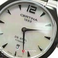 С виду женственная модель внутри – крепкий орешек. Корпус с концепцией DSDS ConceptDouble Security Concept, обозначает двойную надёжность и безупречную точность часов Certina. Двойная система защиты подразумевает обеспечение максимальной устойчивости к ударам и высоких показателей водонепроницаемости. выполнен из прочного гипоаллергенного титана. Перламутровый циферблат защищён сапфировым стеклом. Водозащита WR 100. Отображение числа.