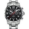 Наручные часы-хронометр сочетают в себе классический и спортивный стиль. Серебристые стальные браслет и ударопрочный корпусУдаропрочный корпусМеханизм заключён в корпус, выполненный из современных материалов, устойчивых к ударам, механическим повреждениям и падению с высоты: инновационный пластик, карбон, нержавеющая сталь, титан. привлекательно гармонируют с чёрным циферблатом. Высокая точность хода швейцарского кварцевого механизма ETA G10.962 Precidrive™Precidrive™Инновационный кварцевый механизм Certina. Часы, оснащённые этим швейцарским калибром, приравниваются к точности к сертифицированным хронометрам, точность хода составляет +/-10 секунд в год. (минимальная погрешность +/-10 секунд в год) подтверждается документом – сертификатом COSCСертификат COSCОфициальный сертификат, подтверждающий то, что часы ходят с особо высокой точностью. Для получения документа часы подвергаются тестовым испытаниям, разработанным швейцарским институтом тестирования хронометров COSC. Допустимая норма для механических часов -4/+6 секунд в день, для кварцевых моделей +/- 0,07 секунд в день.. Надпись DS ConceptDS ConceptDouble Security Concept, обозначает двойную надёжность и безупречную точность часов Certina. Двойная система защиты подразумевает обеспечение максимальной устойчивости к ударам и высоких показателей водонепроницаемости. свидетельствует о противоударности модели и повышенной водонепроницаемости 200 метров. Стекло из сапфира. Стрелки и метки с люминесцентным покрытиемЛюминесцентное покрытиеПозволяет считывать показания времени в темноте. Производители наносят на стрелки, часовые индексы, безель или поверхность циферблата светонакопительный состав, дающий холодное свечение.. Водостойкость 100 метров. Заводная головка с защитой. Секундомер, GMTGMTОтображение времени второго часового пояса.Такая функция особенно актуальна для путешественников и бизнесменов,которые общаются с людьми из разных стран,теперь вы всегда будете знать,какой час у вашего партнёра или близкого человека., отображение числа, индикатор EOLEOLПредставляет собой систему, уведомляющую владельца часов о необходимости замены элемента питания. За 2 недели до полного разряда батарейки секундная стрелка перестаёт ходить чётко и начинает перепрыгивать на 3-4 деления., высокоточный хронографХронографФункция позволяет измерять отрезки времени с особой точностью: часы, минуты, секунды. Верным признаком хронографа является наличие на циферблате 3 дополнительных окошек-счётчиков.. Диаметр корпуса: 42 мм.